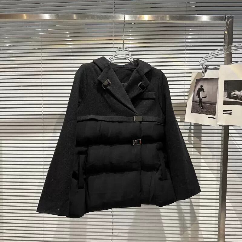 インターネット有名人の同じスタイル 2024 冬の新しいスクエアメタルバックルウールスプライシングデザインスーツ襟ルーズコットンコート ウィンター 冬物 スクウェア gyan3320144001033 | vestitialla