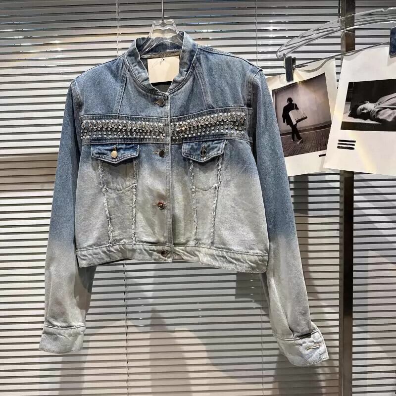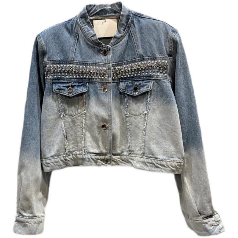 ネット有名人同スタイル2024春新スタイル大粒ラインストーンビーズ重工業グラデーションウォッシュデニムショートジャケット スプリング 春物 gyan3351219288098 | vestitialla
