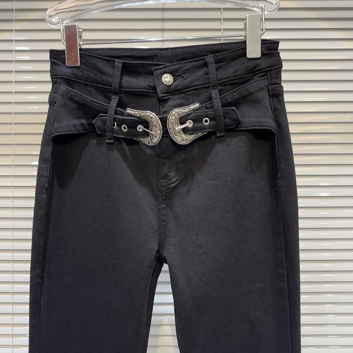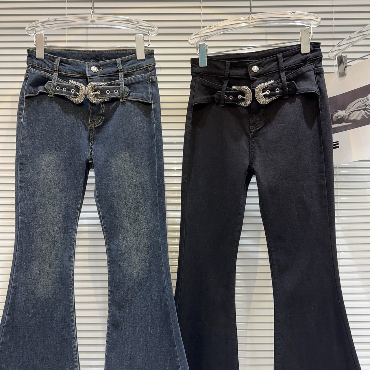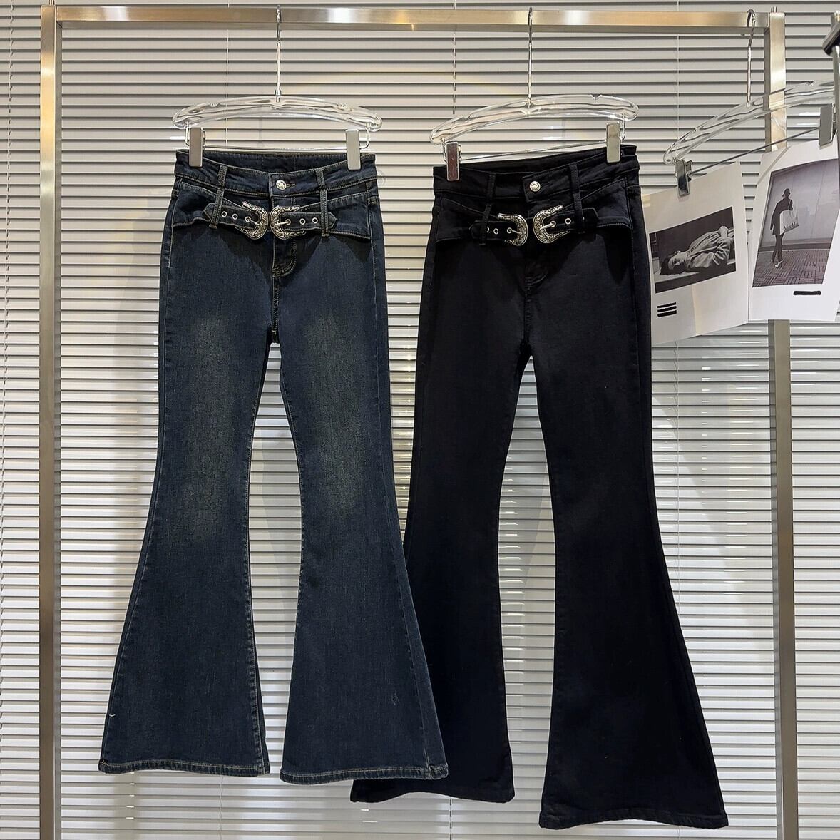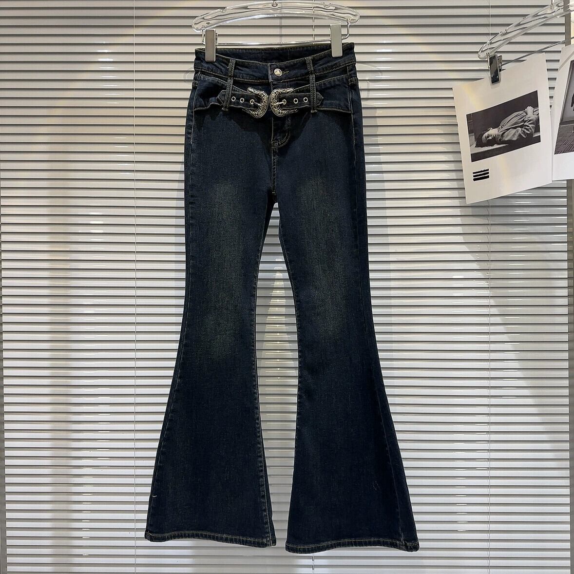 インターネット有名人の同じスタイル2024冬の新しいニッチスタイルレトロ彫刻メタルベルトとベルベットフレアジーンズ レッド ウィンター 冬物 ハーネス gyan3327441913047 | vestitialla