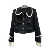 インターネットセレブと同じスタイル 2024 冬の新スタイル小さな香りの良い襟ストラップ袖口スプライシングシャツ袖ツイードショートコート女性 ウィンター 冬物 gyan3337427318204 | vestitialla