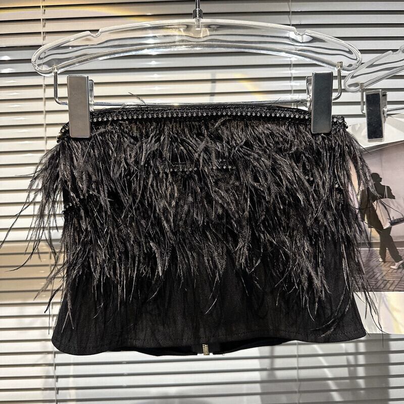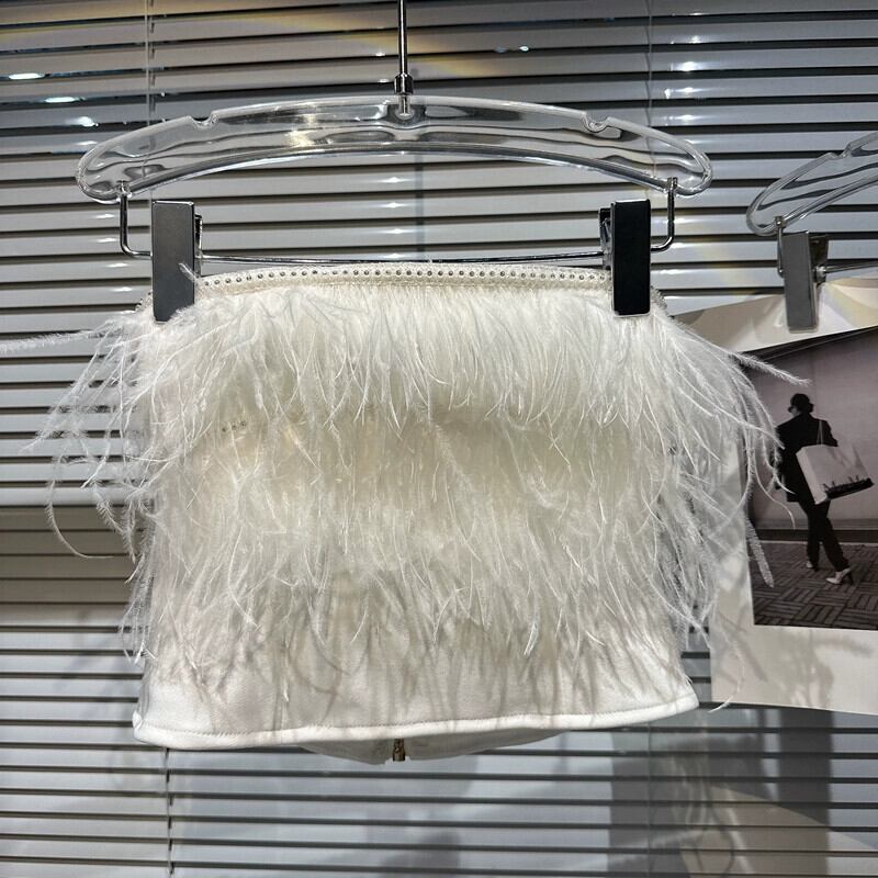 インターネットセレブの同じスタイル2024春の新しいスタイル少し香りのセレブダイヤモンドエッジフェザーヘアガードルウエストチューブトップベスト スプリング 春物 gyan3324715105231 | vestitialla