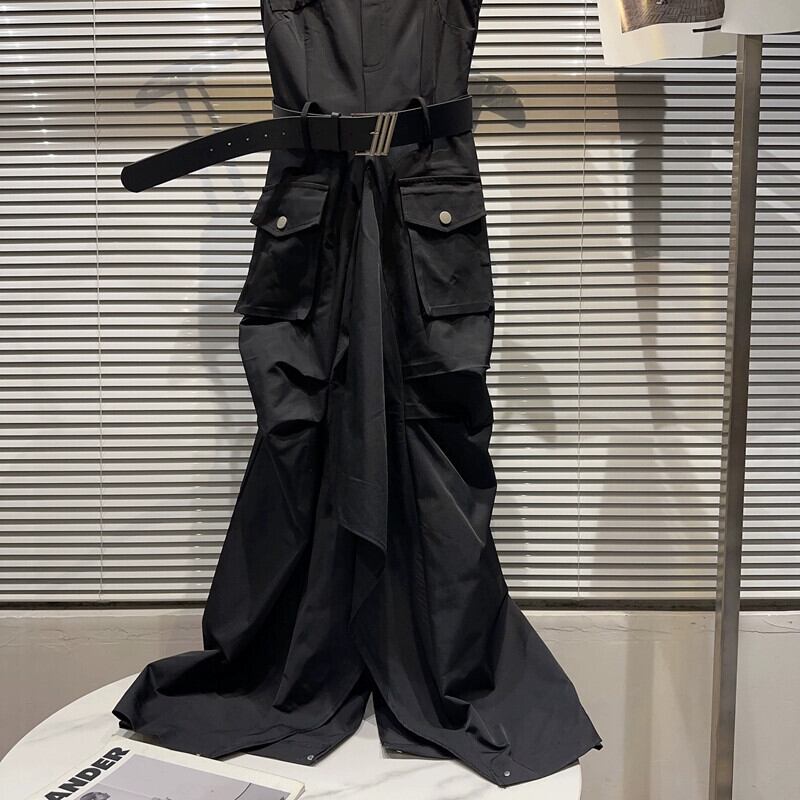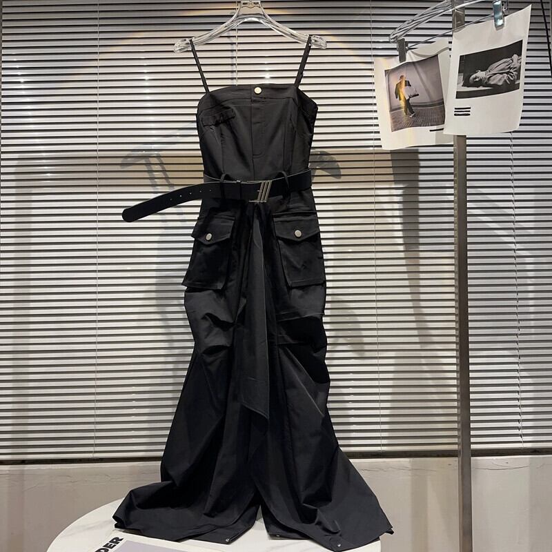 インターネットセレブと同じスタイル 2024 春と夏の新しいアメリカンレトロネクタイビッグポケットベルトスリットルーズワークウェアドレス女性 スプリング 春物 サマー 夏物 ハーネス gyan3327260969527 | vestitialla