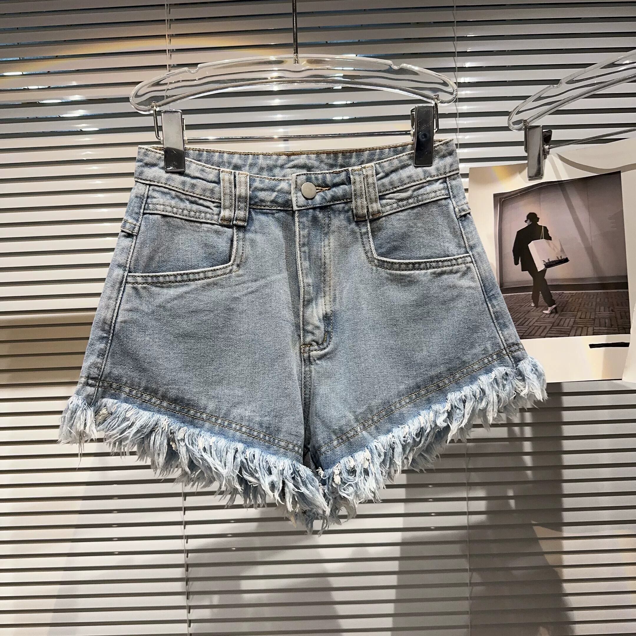 ネット有名人の同じスタイル 2024 春の新しいストリートクールな毛皮のような裾のズボンは洗浄された 3 点デニムショートパンツパンツ女性 スプリング 春物 ショーツ ブルマー gyan3388685148152 | vestitialla