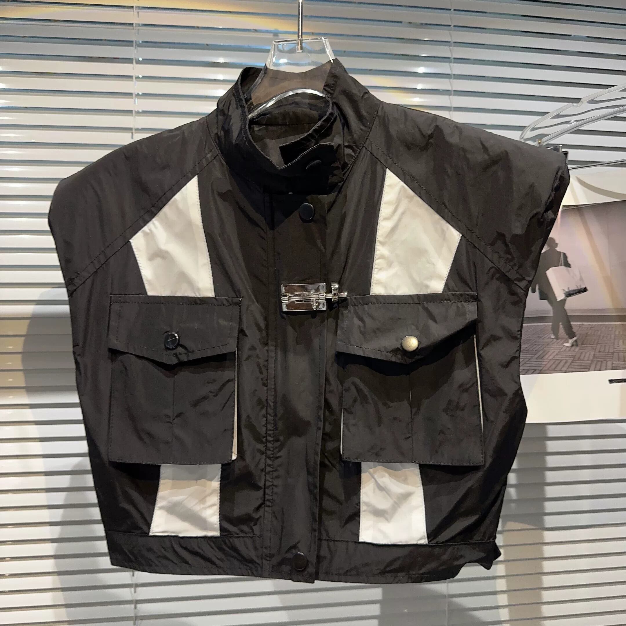 インターネット有名人の同じスタイル 2024 春の新作ストリート黒と白のコントラストポケットショルダーパッド作業服ベストベスト女性 ホワイト ブラック スプリング 春物 gyan3330896350005 | vestitialla