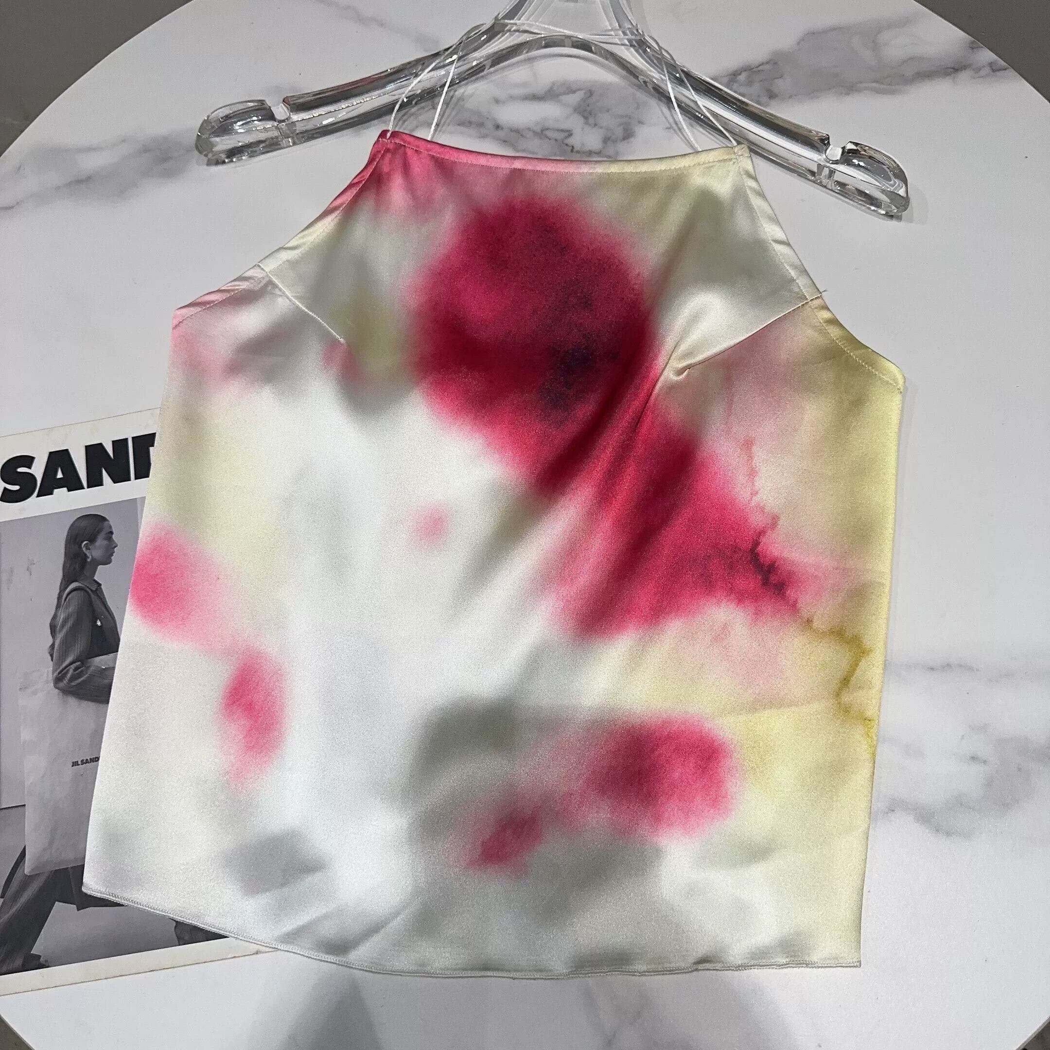 インターネットセレブと同じスタイル 2024 夏の新しいスタイル小さな香りタイダイコントラストカラーグラデーションサテンホルターネックホルタートップ女性 サマー 夏物 gyan3339777593123 | vestitialla