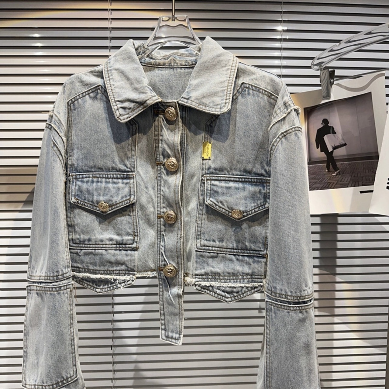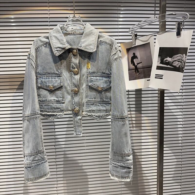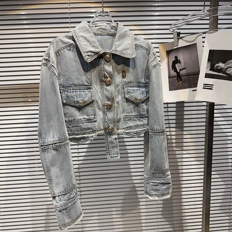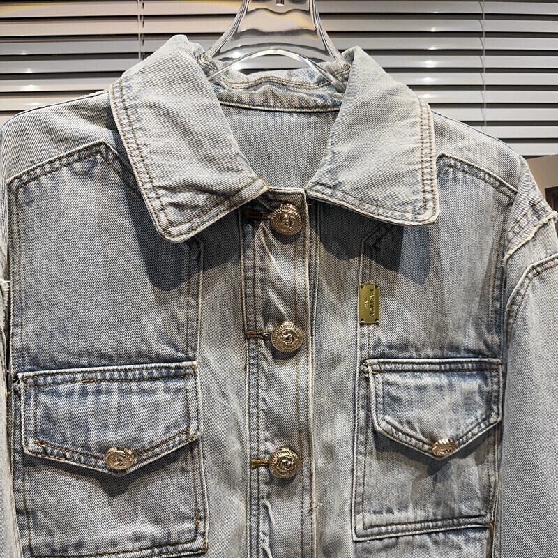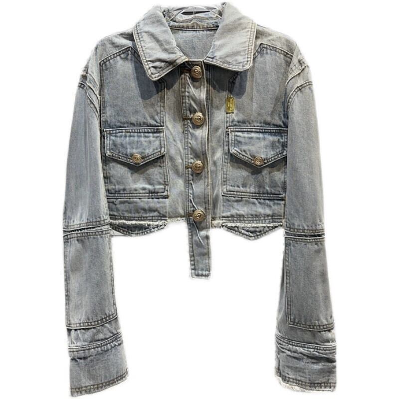 ネットセレブ同スタイル2024春新作ストリートメタルバックルオールドウォッシュアメリカンバイクデニムジャケットショートジャケット スプリング 春物 gyan3342553978809 | vestitialla