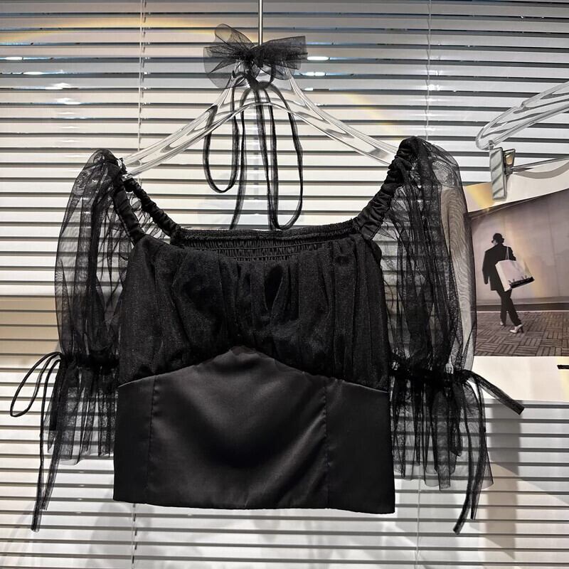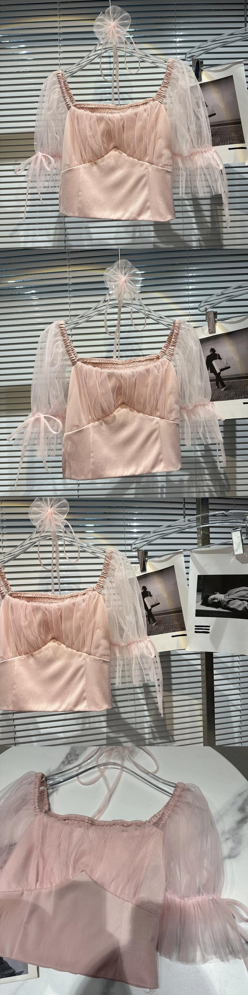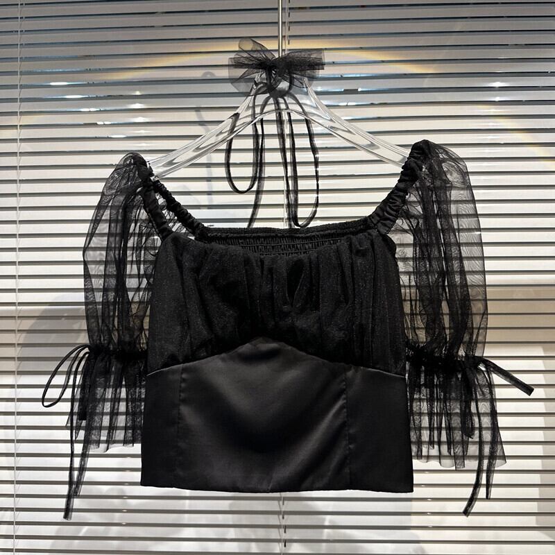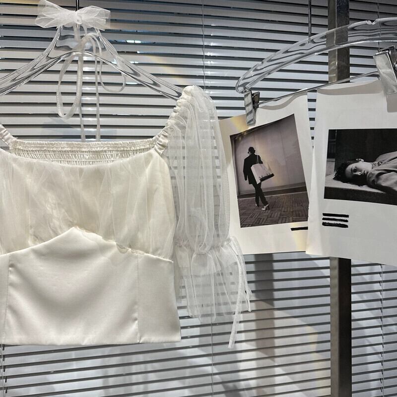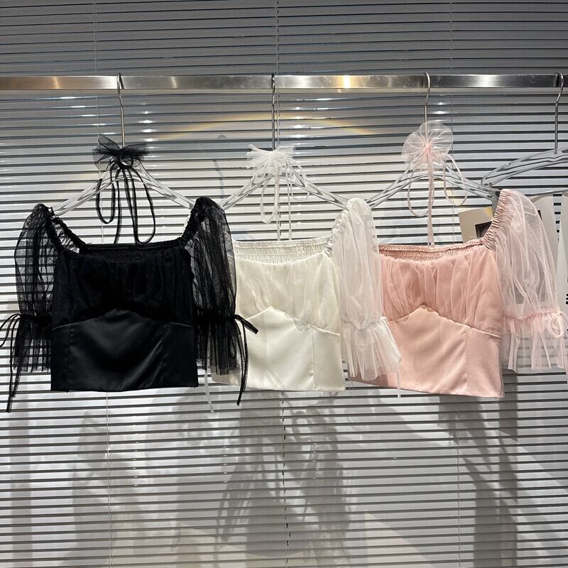 ネット有名人の2024年夏新作新スタイル小さな香りストラップメッシュフラワースプライシングデザイン半袖シフォンシャツ サマー 夏物 フラワーデザイン gyan339087714138 | vestitialla