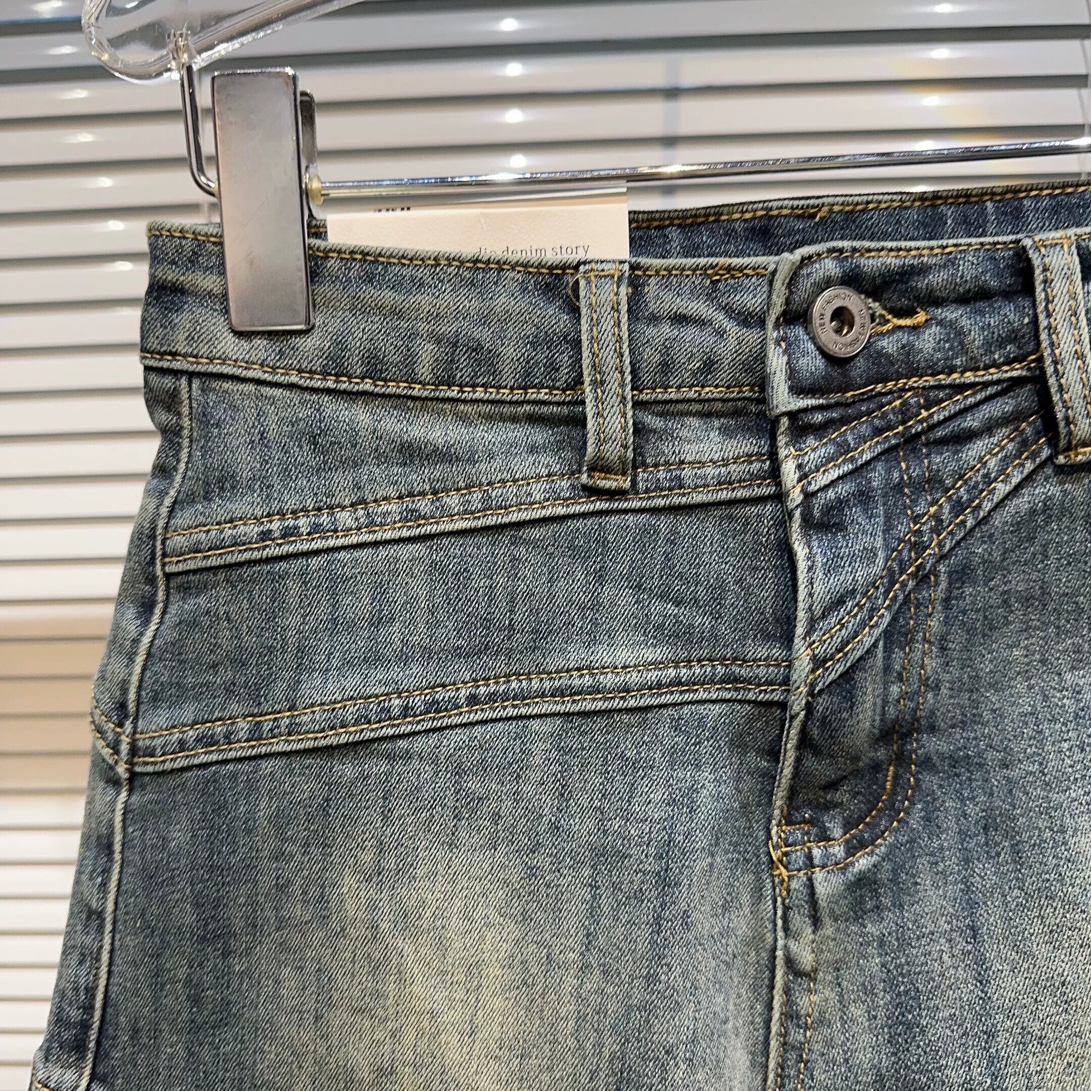 ネット有名人同スタイル2024春新作ストリートクールベベルデザインウォッシュ加工デニム七分丈ショートパンツ スプリング 春物 ショーツ ブルマー gyan3327183613115 | vestitialla
