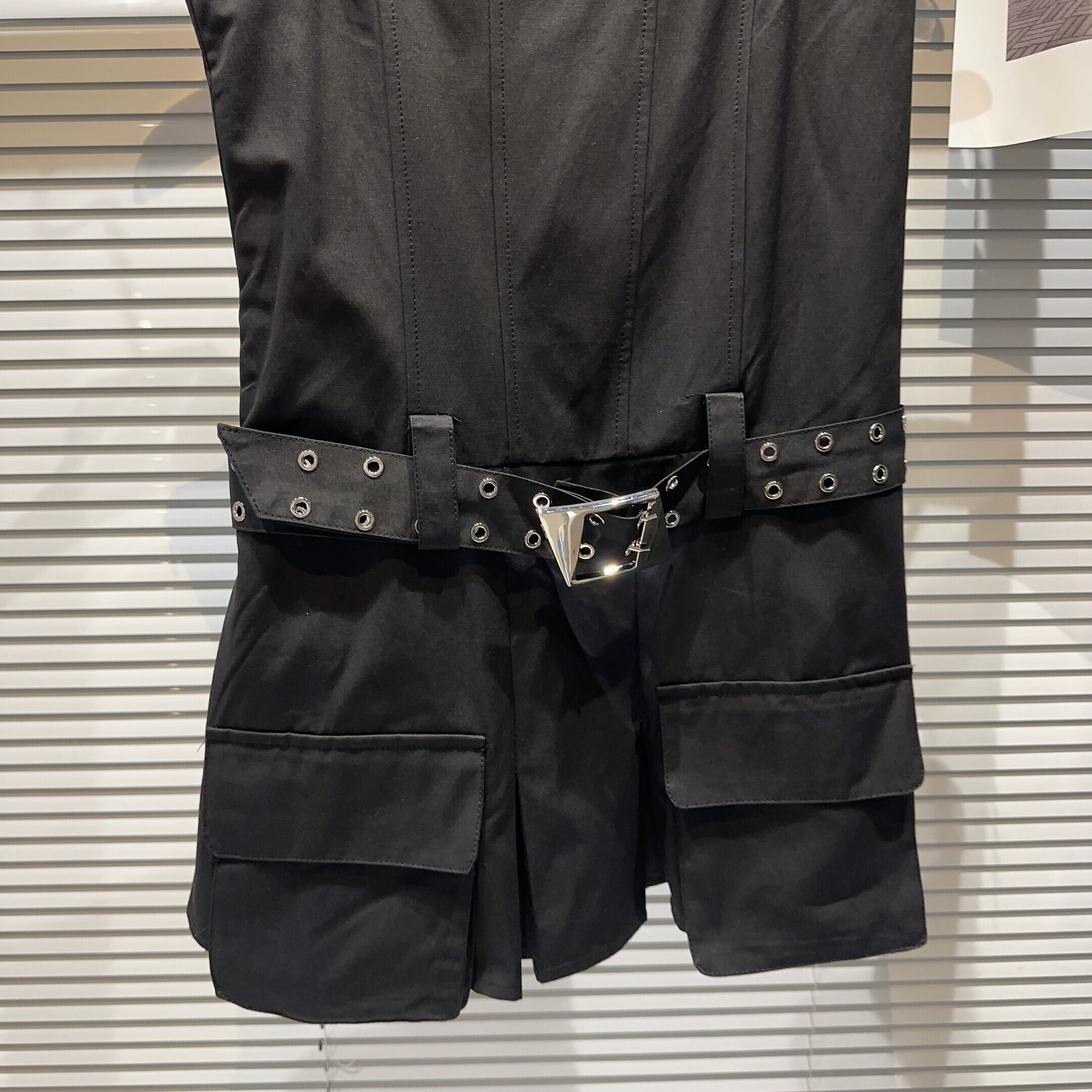 インターネット有名人同じスタイル 2024 夏の新しいニッチスタイルメタルバックルベルトウエストウエストワークウェアサスペンダードレス女性 サマー 夏物 ハーネス gyan3355553632325 | vestitialla