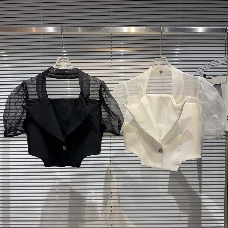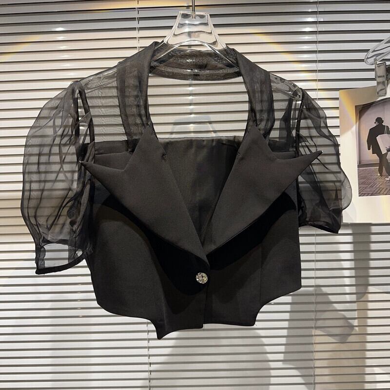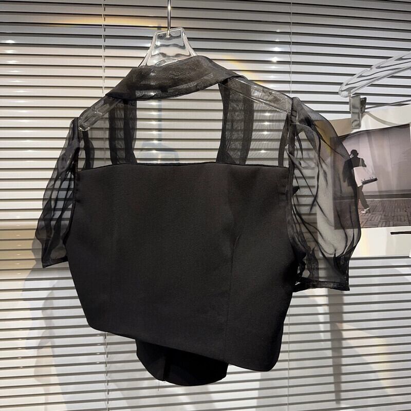 インターネット有名人同じスタイル 2024 夏の新しいニッチモデルメッシュスプライシング袖気質日焼け止めスーツショートジャケット女性 サマー 夏物 gyan3384969169975 | vestitialla