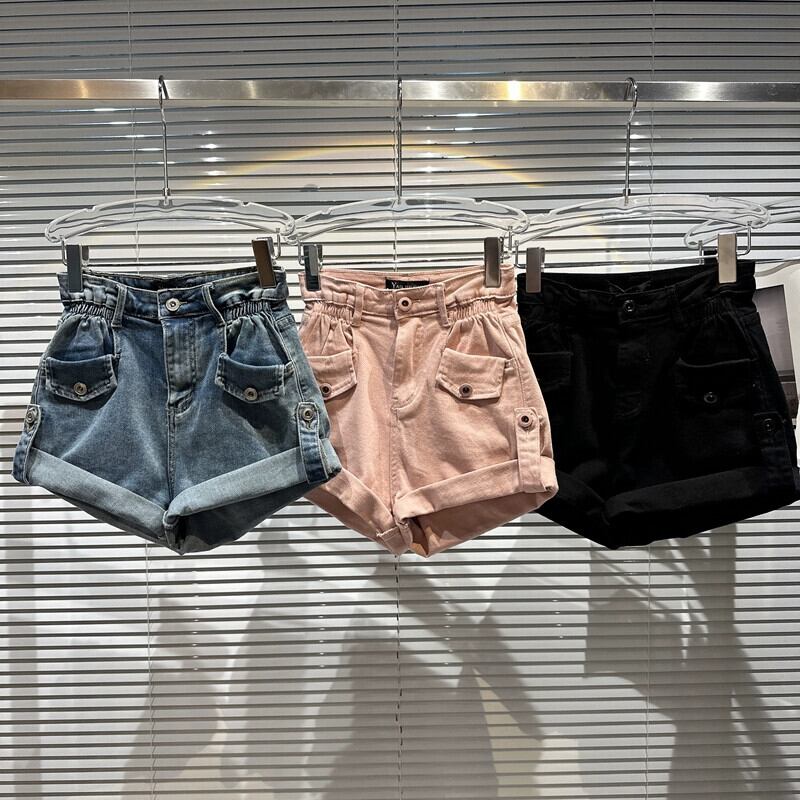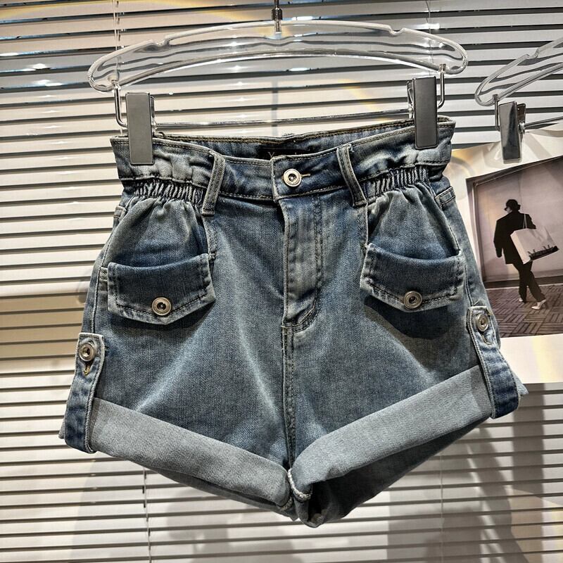 インターネットセレブと同じスタイルの2024年新作夏パンツ、ストラップとウエストゴムデザインのデニムショートパンツとトレンディパンツ エラスティック 伸縮 サマー 夏物 ショーツ ブルマー gyan337395627086 | vestitialla