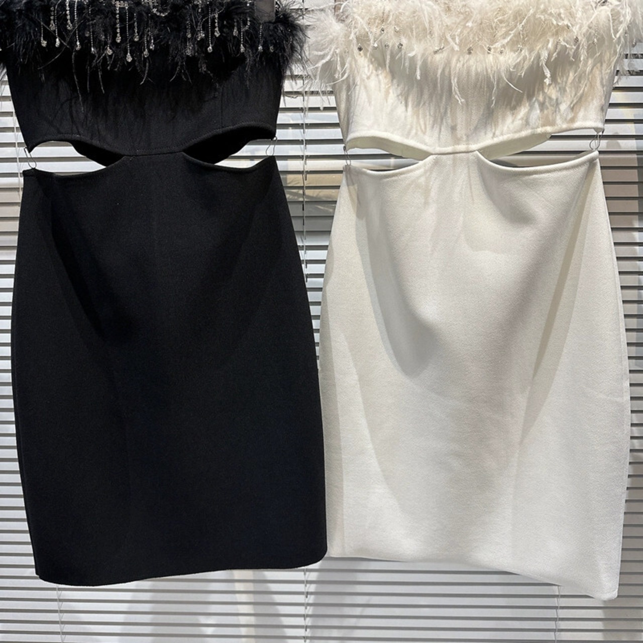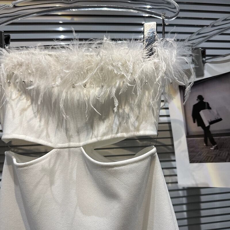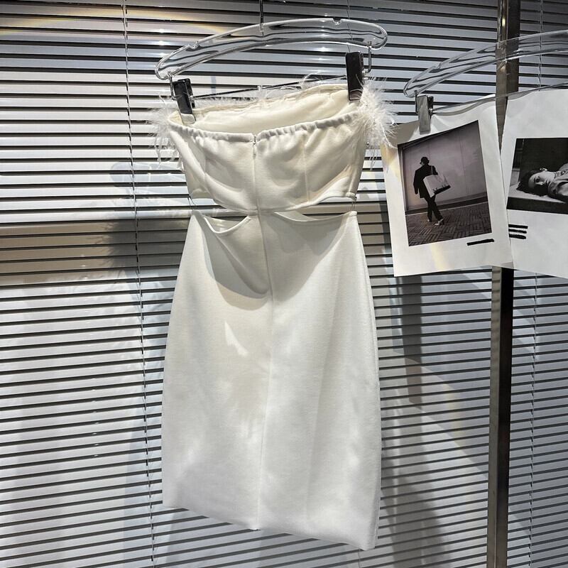 インターネットセレブと同じスタイル 2024 春夏新スタイル小さな香りの良いスタイル毛皮フリンジラインストーン露出ウエストセクシーセレブチューブトップドレス スプリング 春物 サマー 夏物 gyan3319315046377 | vestitialla