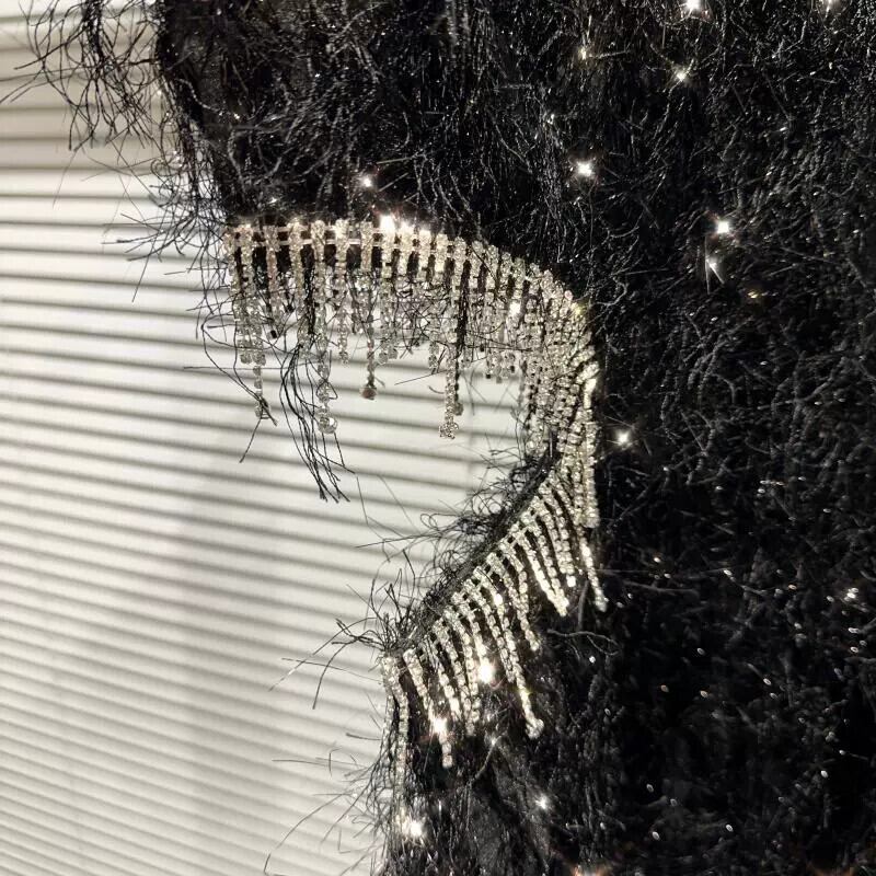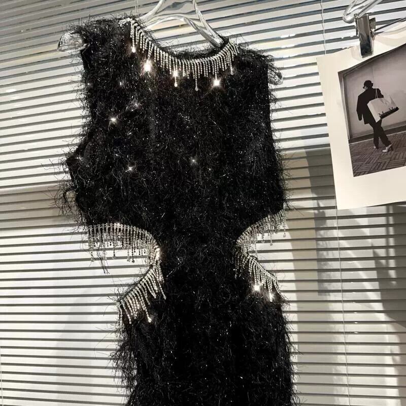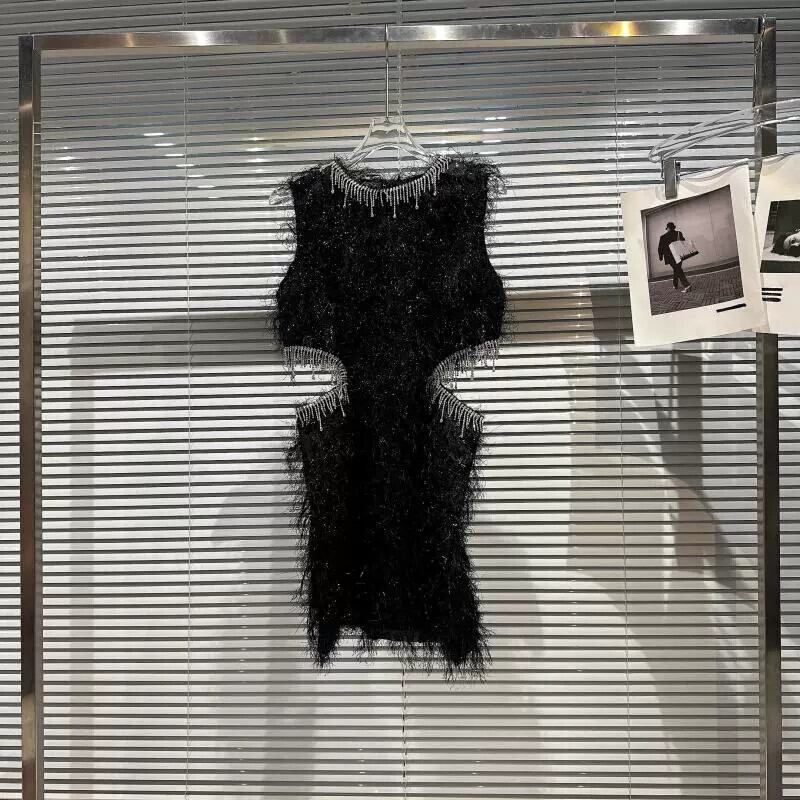 インターネット有名人同じスタイル 2023 秋の新高精細セクシーなセレブのラインストーン電話襟毛皮のようなウエストレスドレス女性 オータム 秋物 gyan3388385790020 | vestitialla