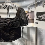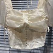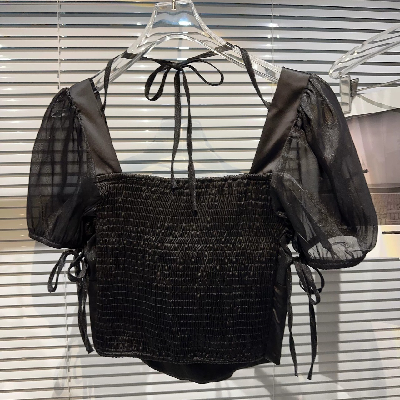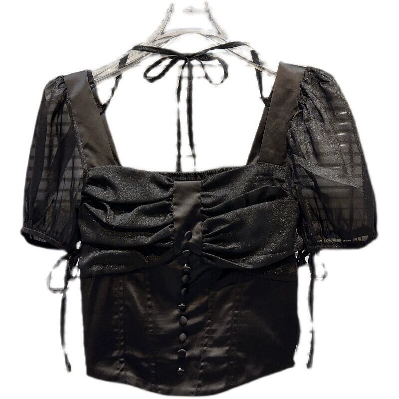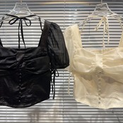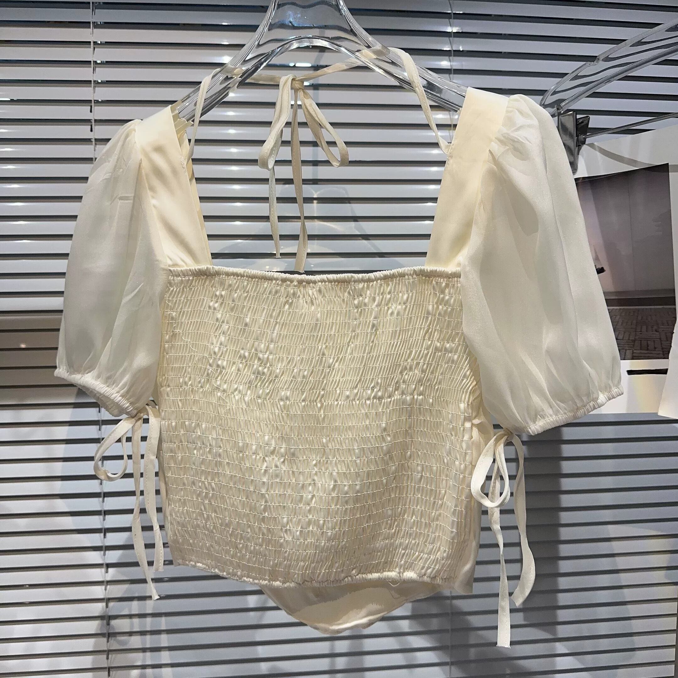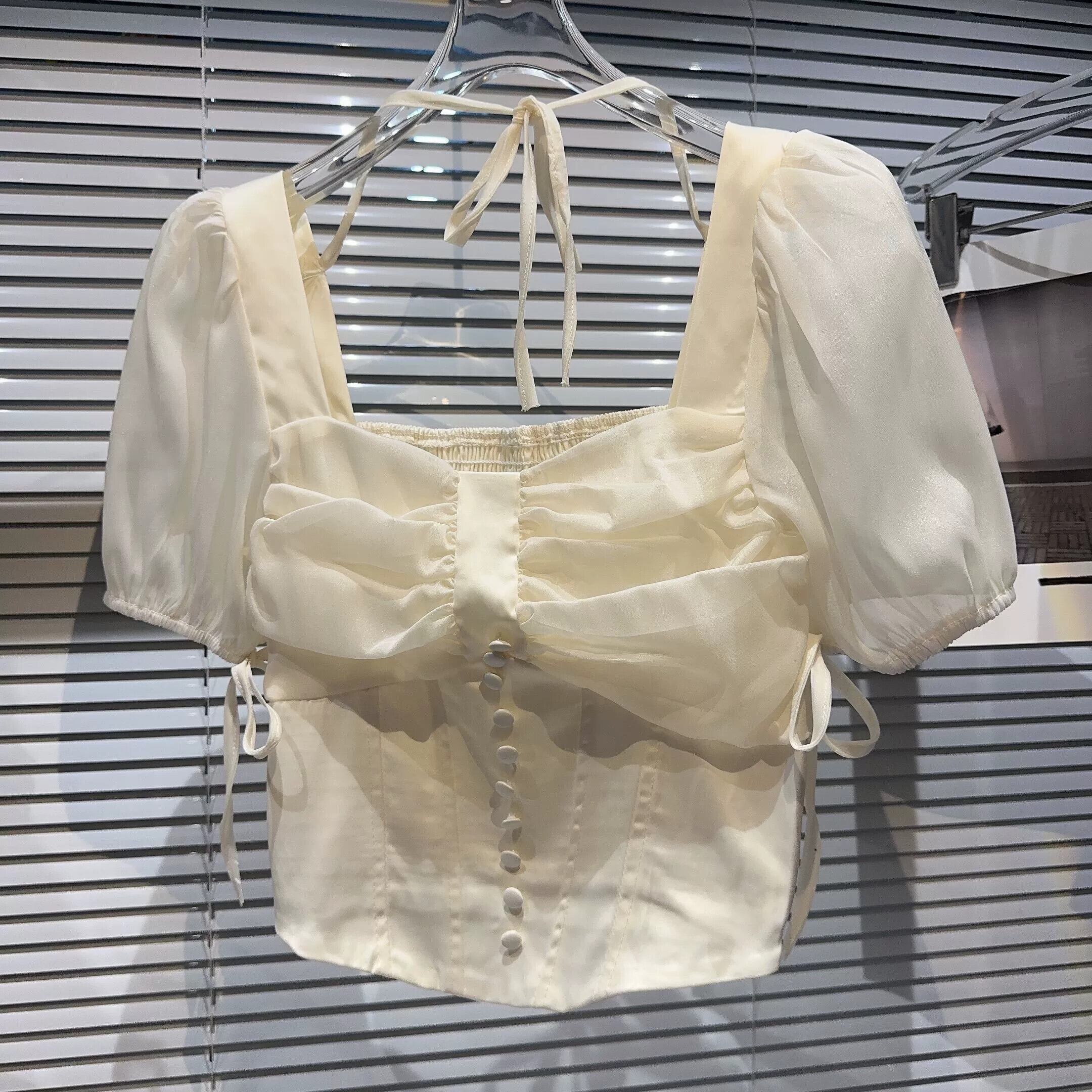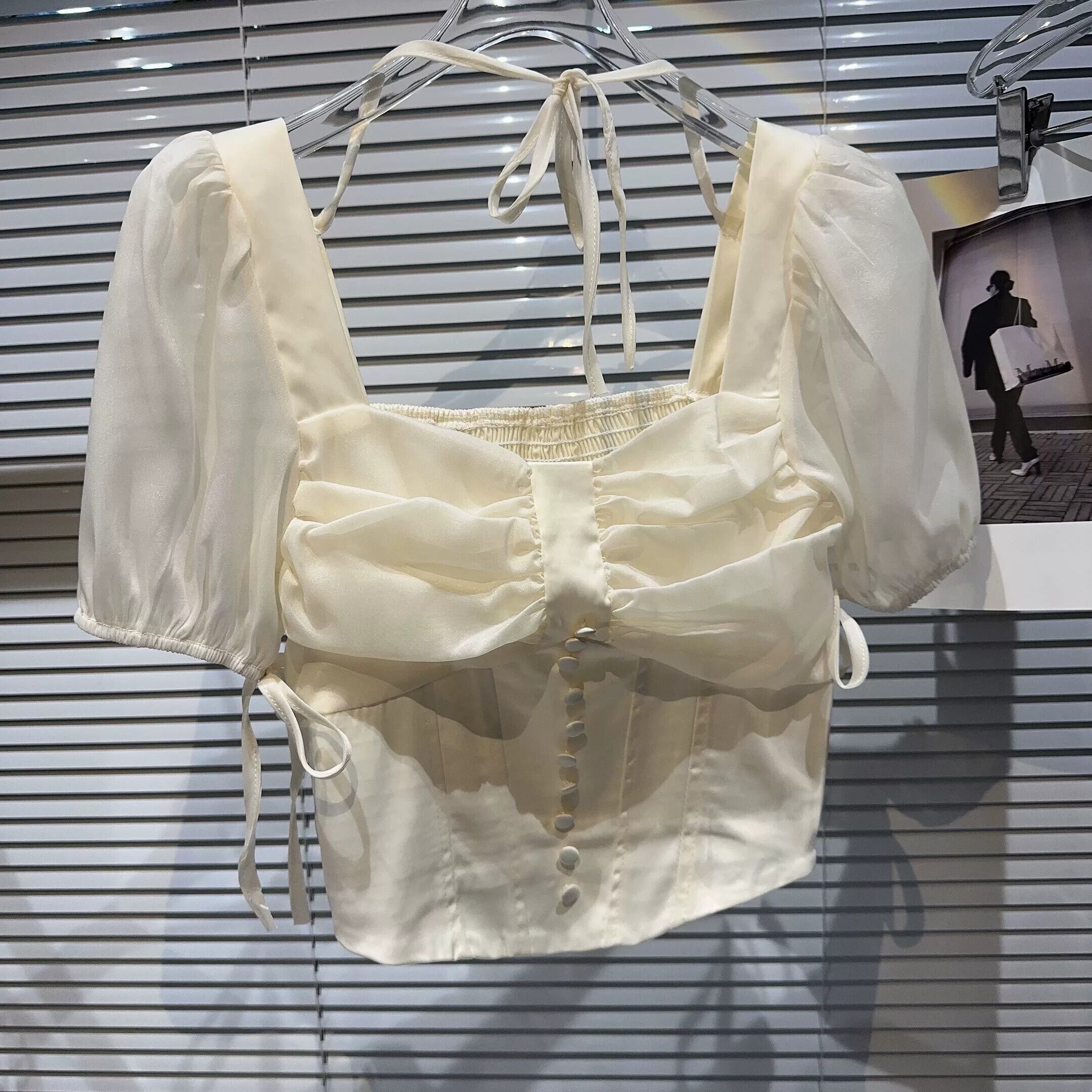 インターネットセレブと同じスタイル 2024 夏の新スタイル小さな香りのスタイルホルターネックストラップデザインセレブメッシュ半袖シャツ小さなシャツ女性 サマー 夏物 gyan3323739669654 | vestitialla