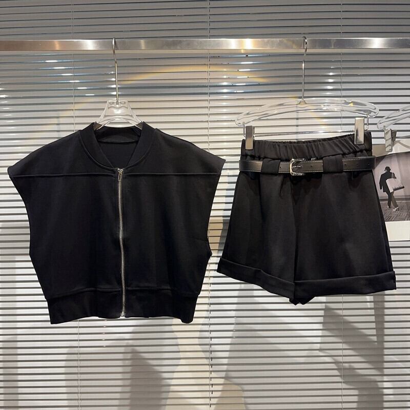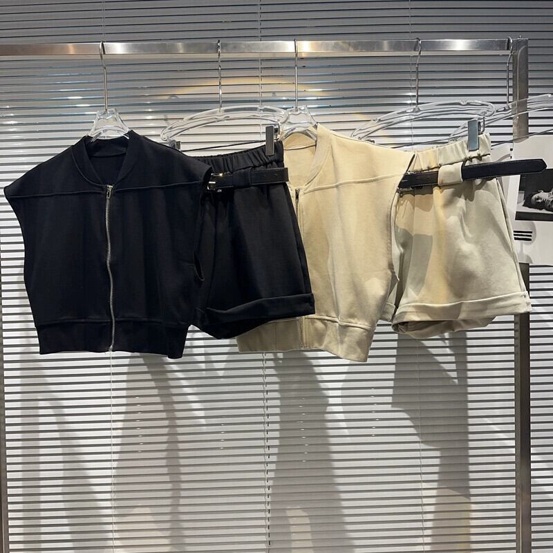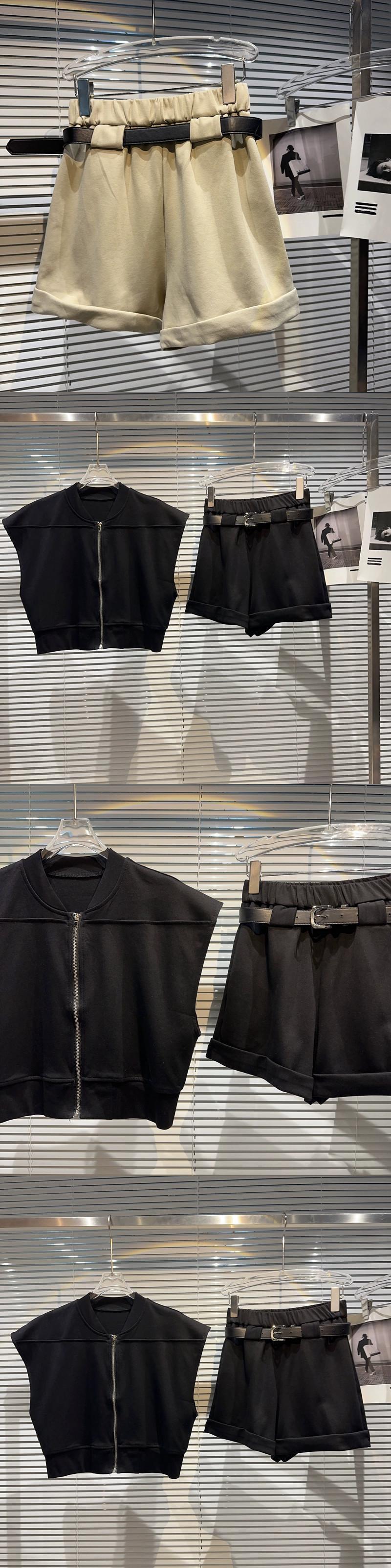 インターネット有名人の同じ2024夏の新しいニッチスタイルジッパーベストジャケット+ベルトショーツ作業服カジュアルスーツ サマー 夏物 ハーネス ブルマー gyan3333554328609 | vestitialla