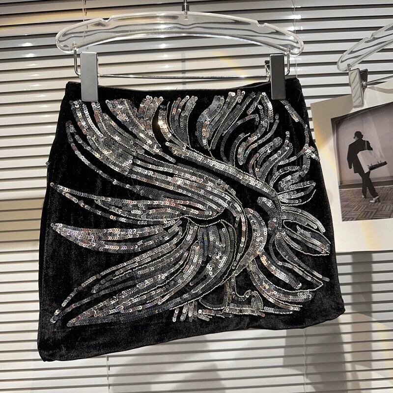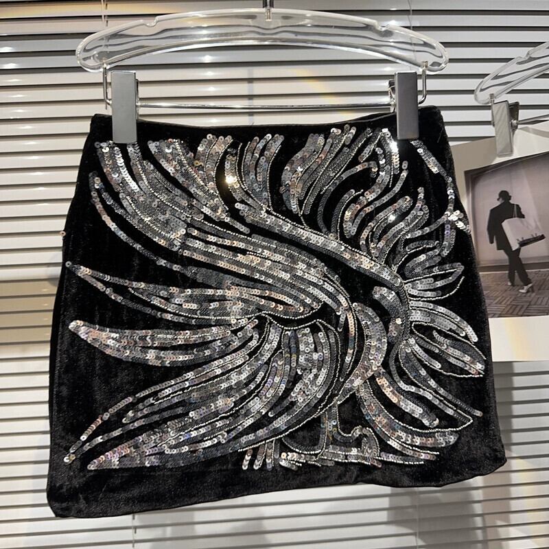 インターネット有名人の同じスタイル2024秋の新しい重工業キャットウォークスタイルスパンコール刺繍ベルベットヒップスカートスカートスカート オータム 秋物 gyan3385840685496 | vestitialla