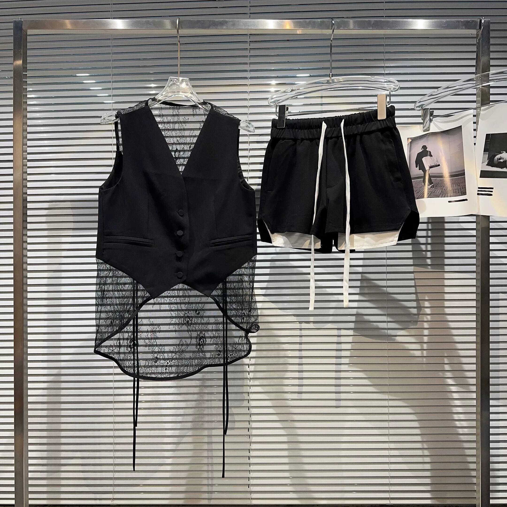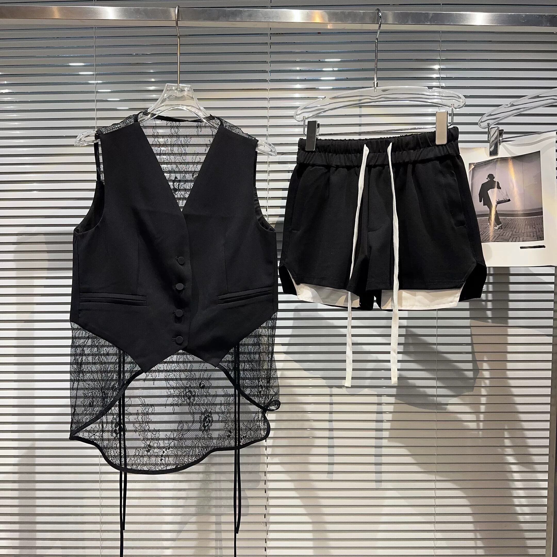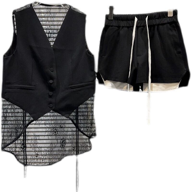 インターネット有名人の同じスタイル2024夏の新しいニッチレーススプライシングスーツベスト+ポケットエッジ弾性ウエストショーツセット エラスティック 伸縮 サマー 夏物 ブルマー gyan3362299538605 | vestitialla