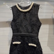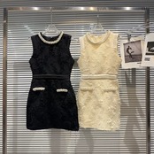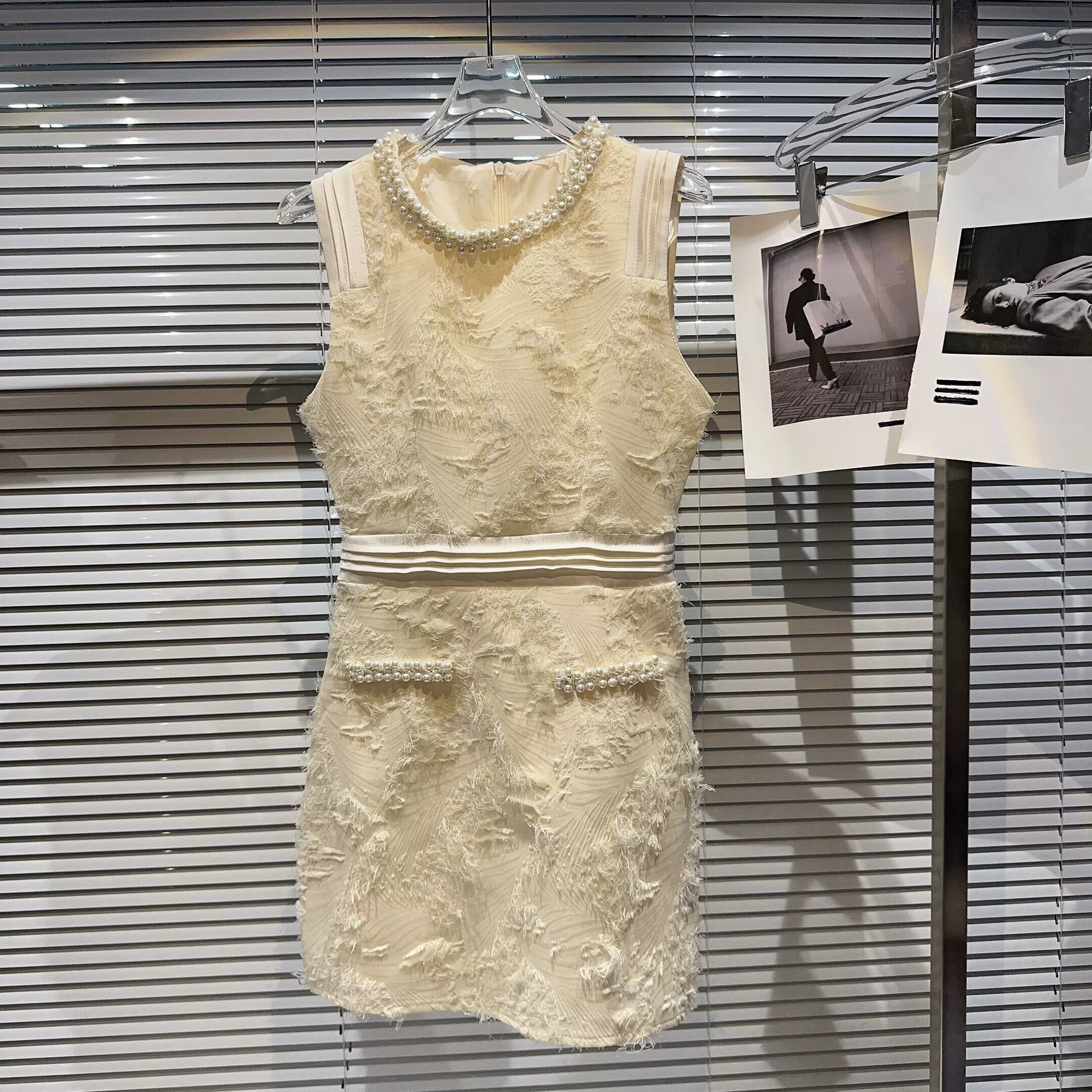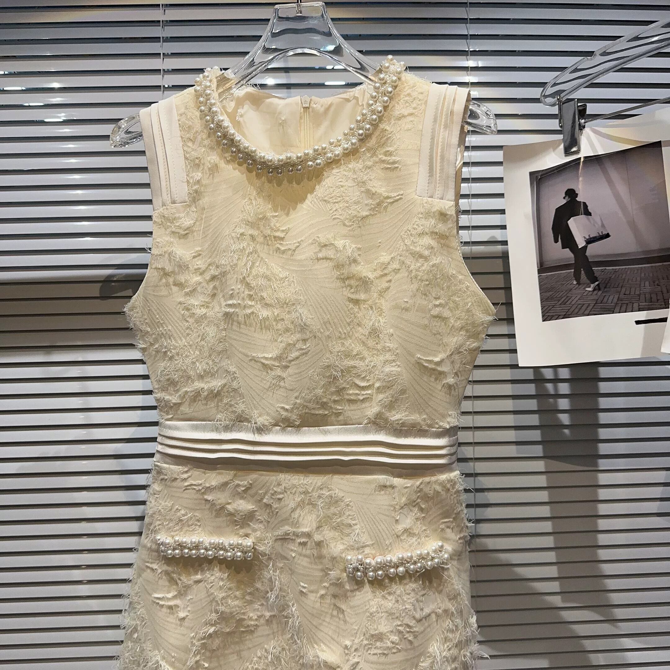 インターネットセレブの同じスタイル2024新しい夏のスタイル小さな香りのスタイルパールネックラインツイードウエストウエストエレガントなレディドレス サマー 夏物 真珠 gyan3323382022035 | vestitialla