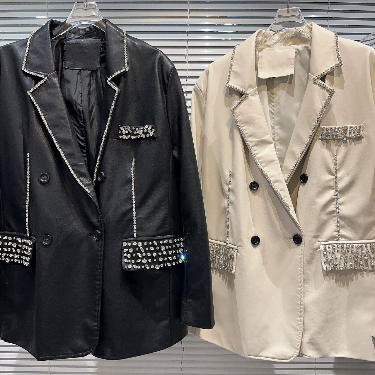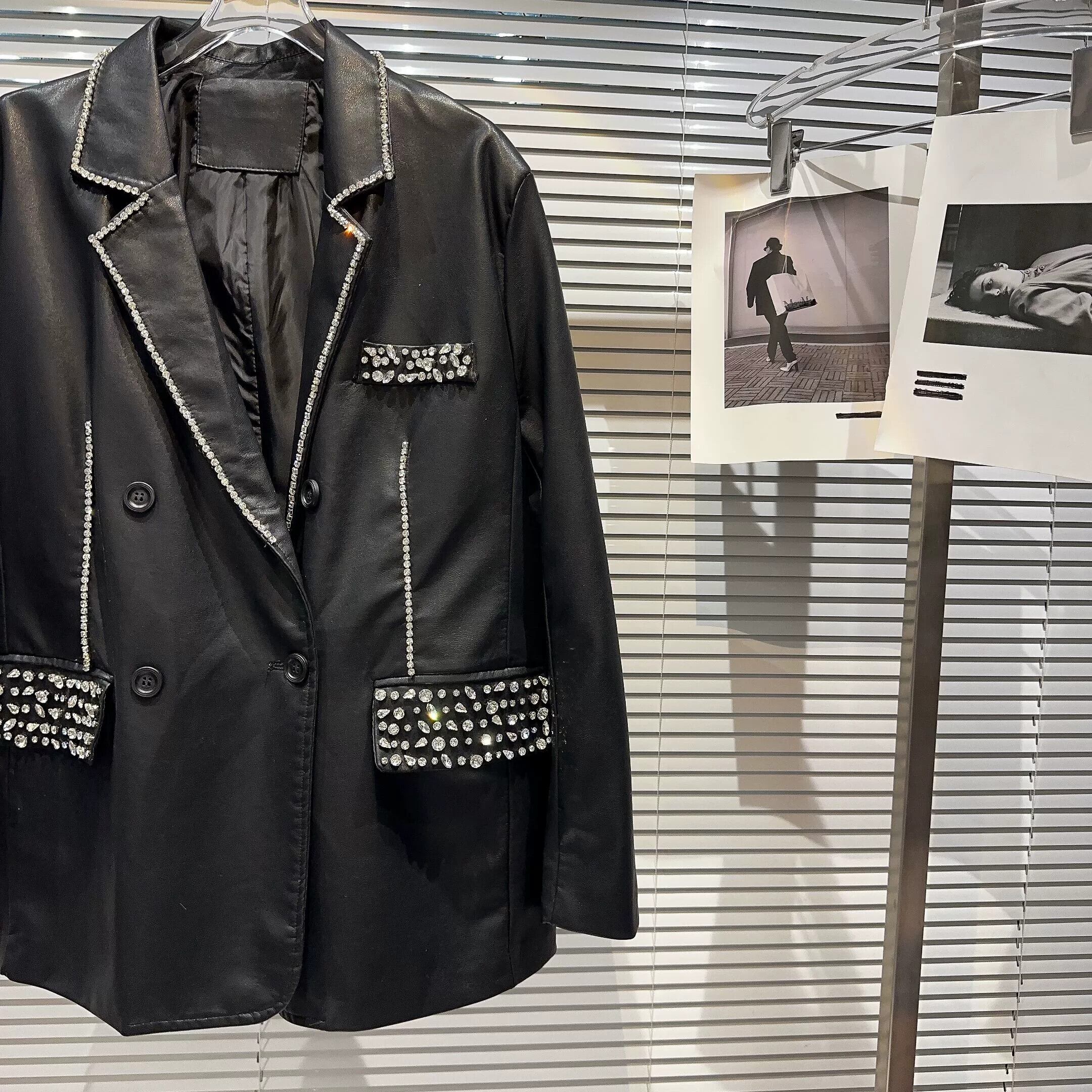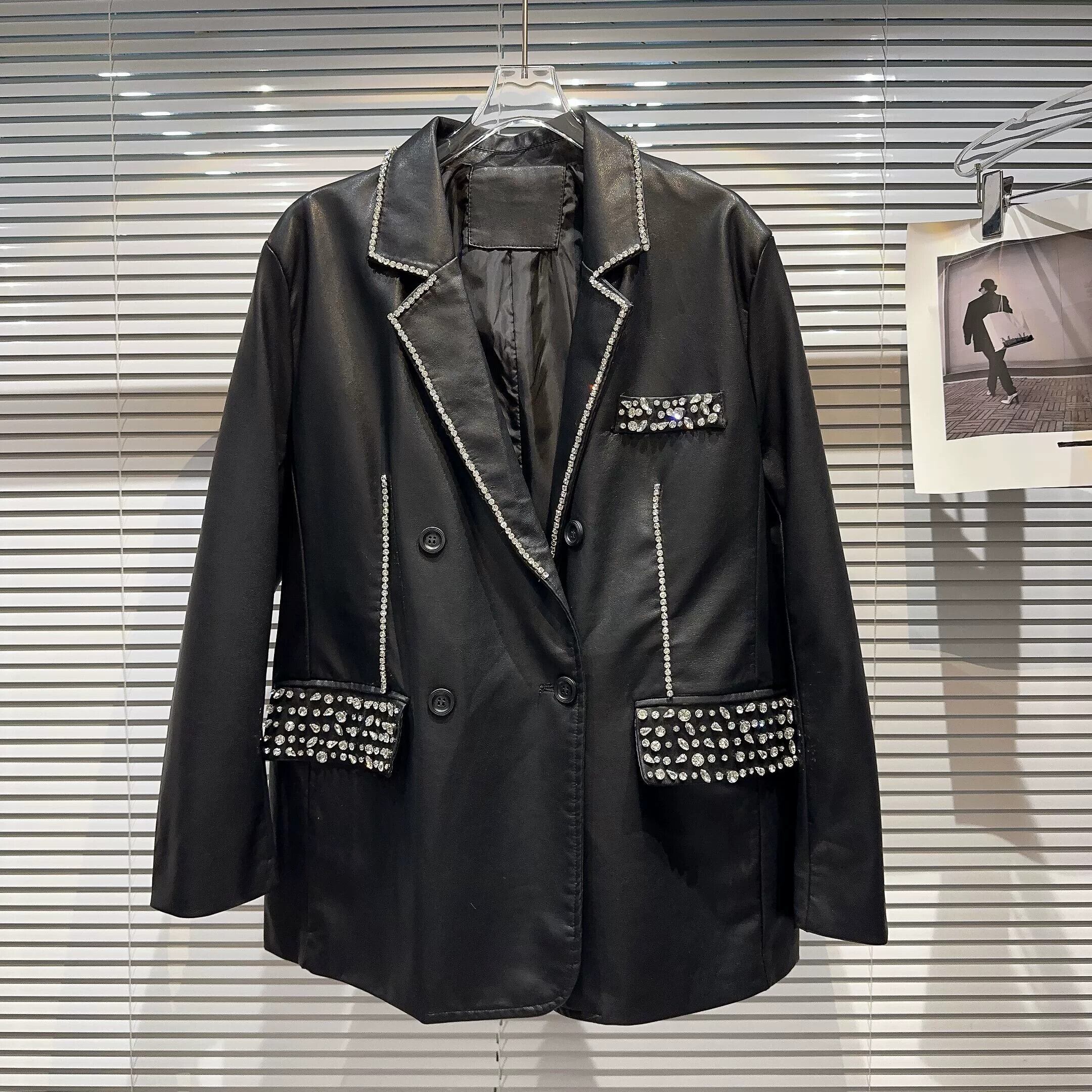 インターネットセレブと同じスタイル 2024 春の新スタイル重工業ラインストーンビーズエッジデザインショルダーパッドスーツスーツウォッシュレザージャケット女性 スプリング 春物 gyan3339314685569 | vestitialla