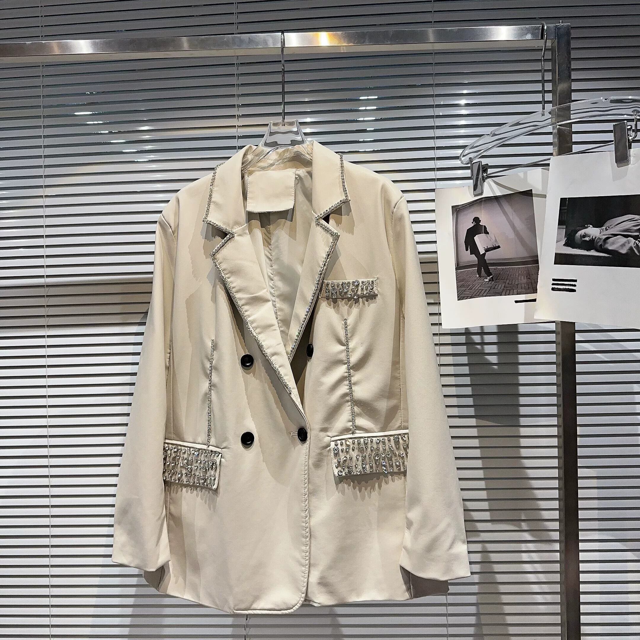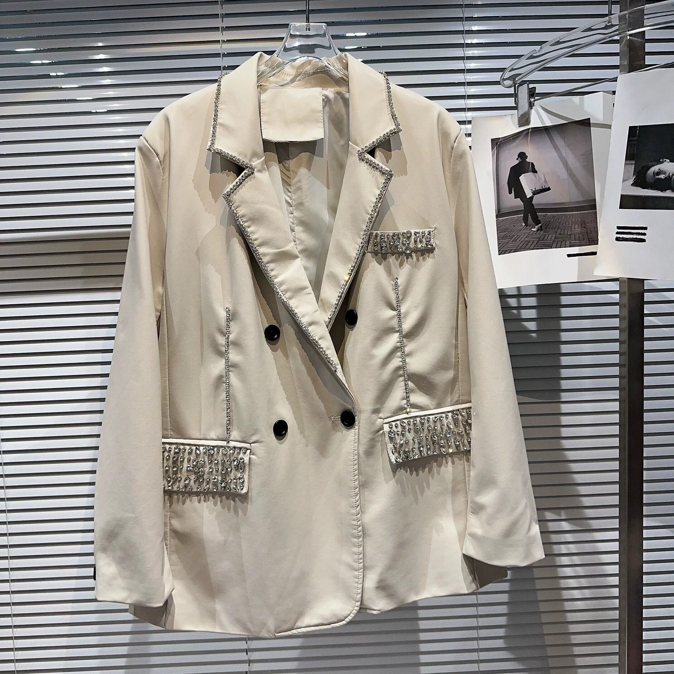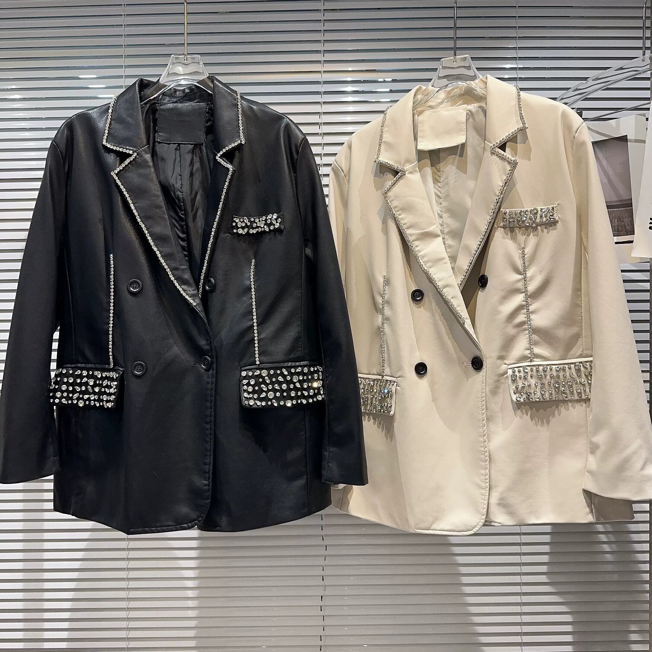インターネットセレブと同じスタイル 2024 春の新スタイル重工業ラインストーンビーズエッジデザインショルダーパッドスーツスーツウォッシュレザージャケット女性 スプリング 春物 gyan3339314685569 | vestitialla