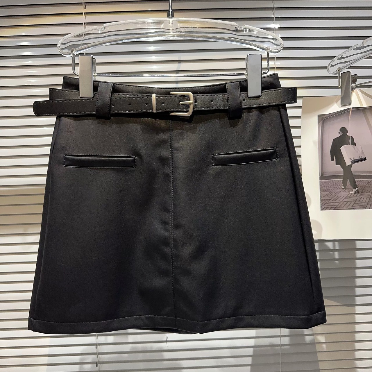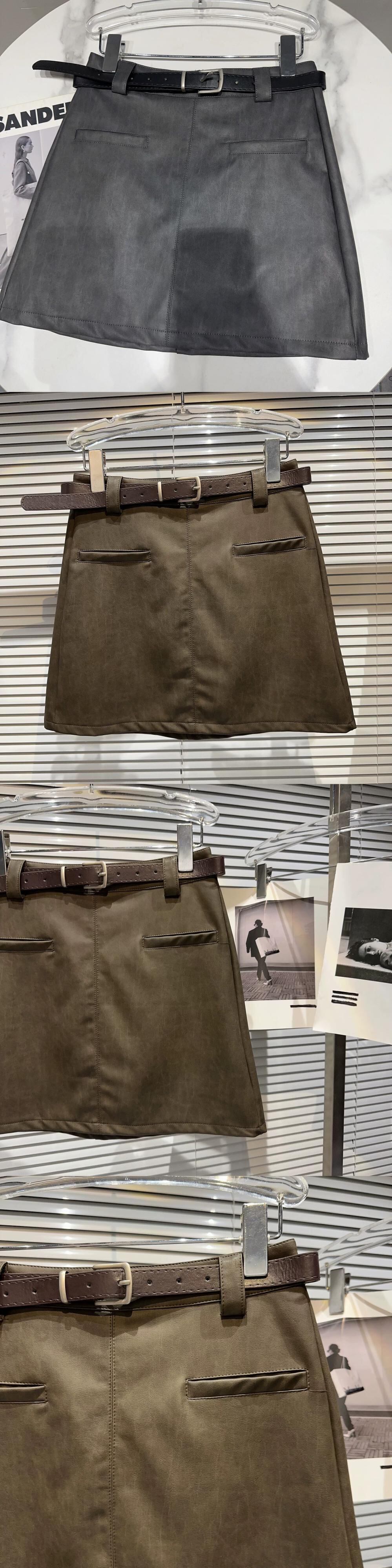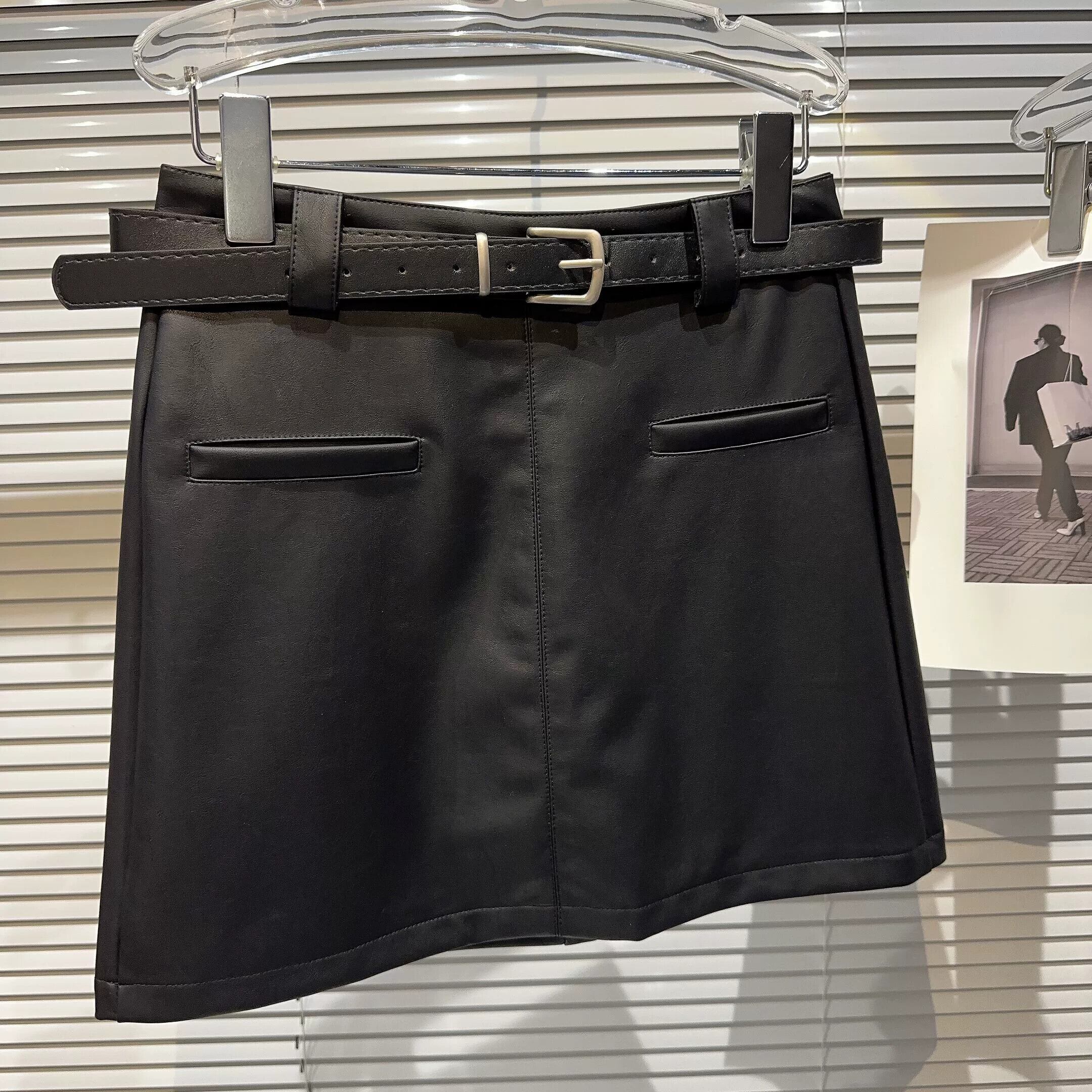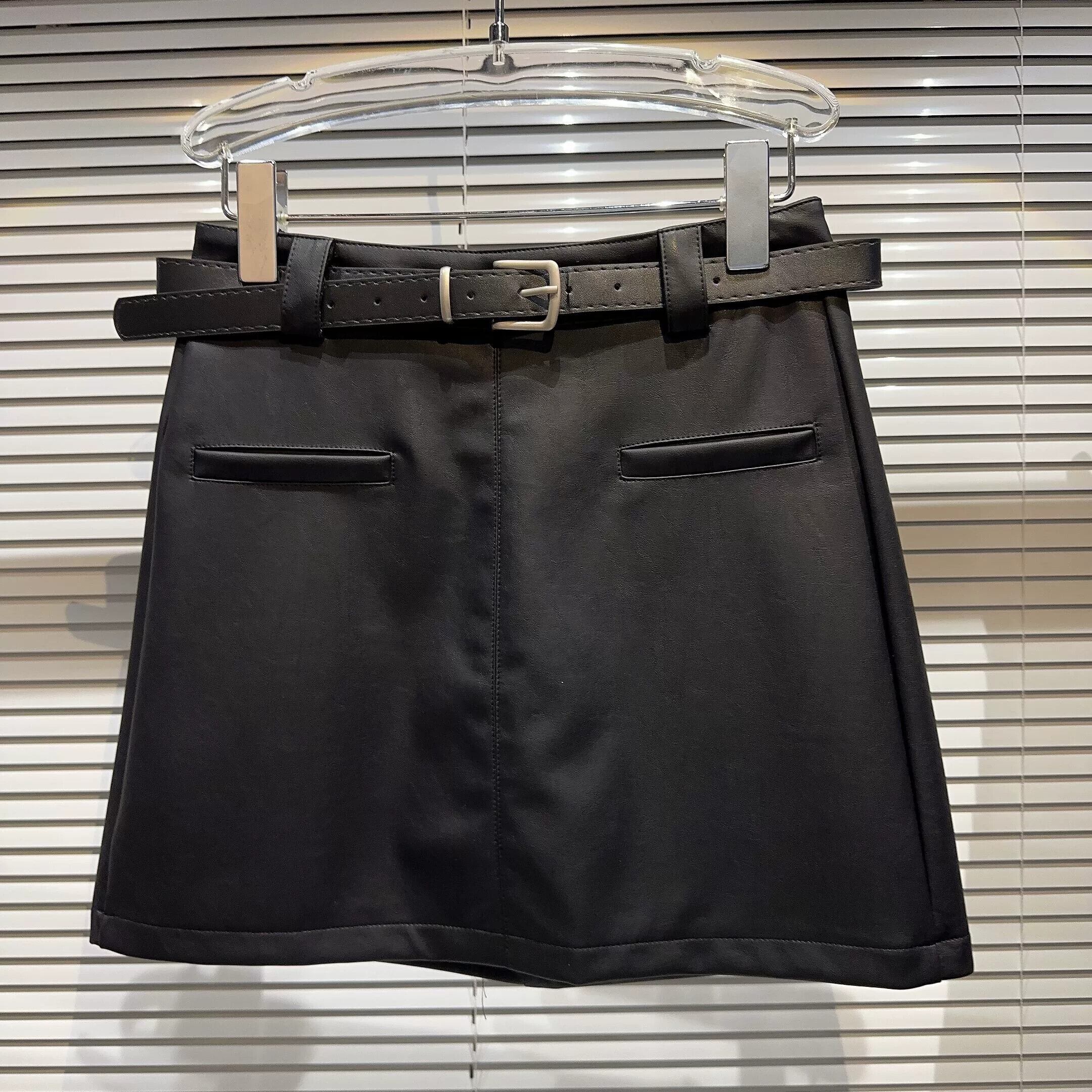 インターネット有名人の同じスタイル2024春の新しいニッチスタイルポケットレトロな質感のダメージ加工PUレザーショートスカートヒップスカート スプリング 春物 gyan3357374749491 | vestitialla