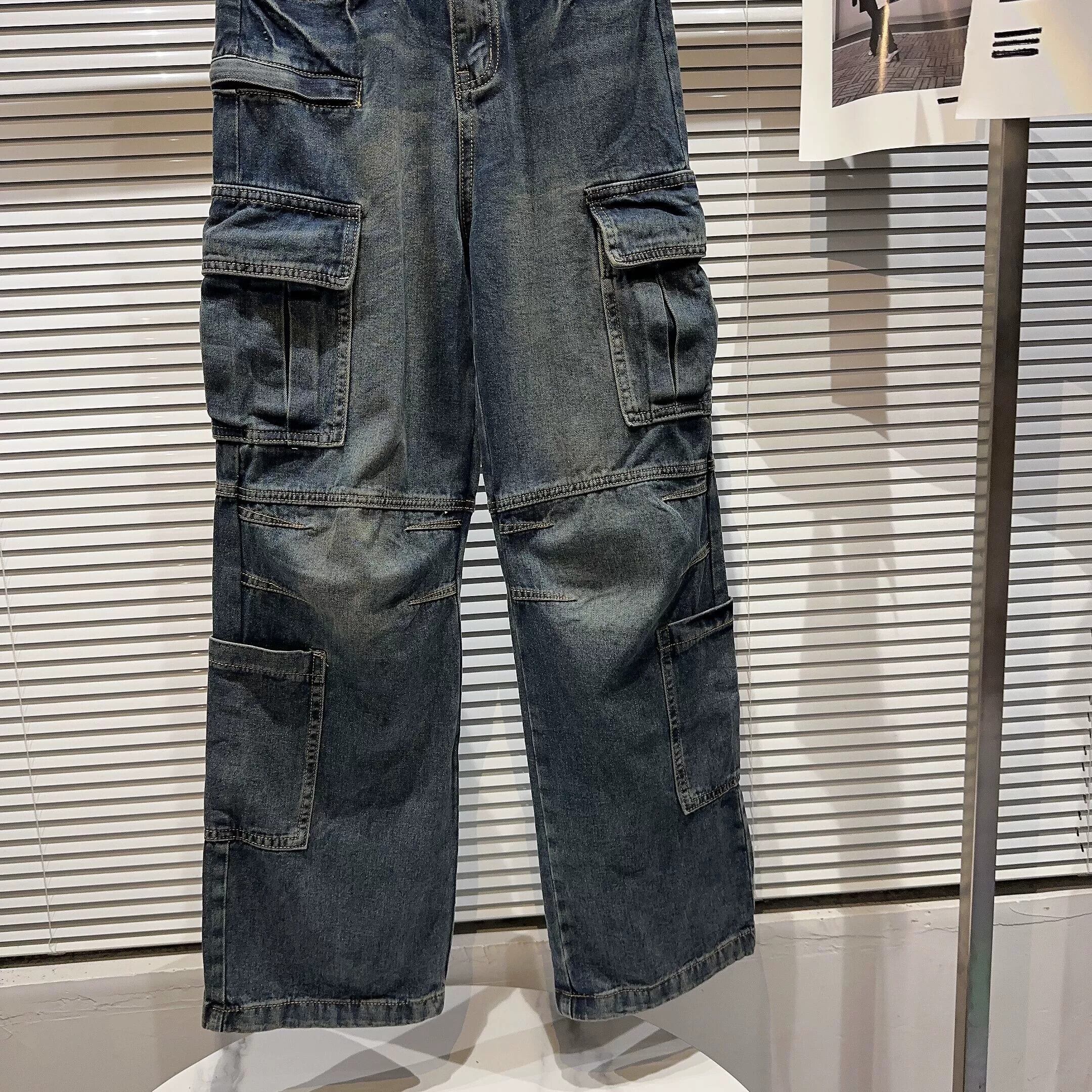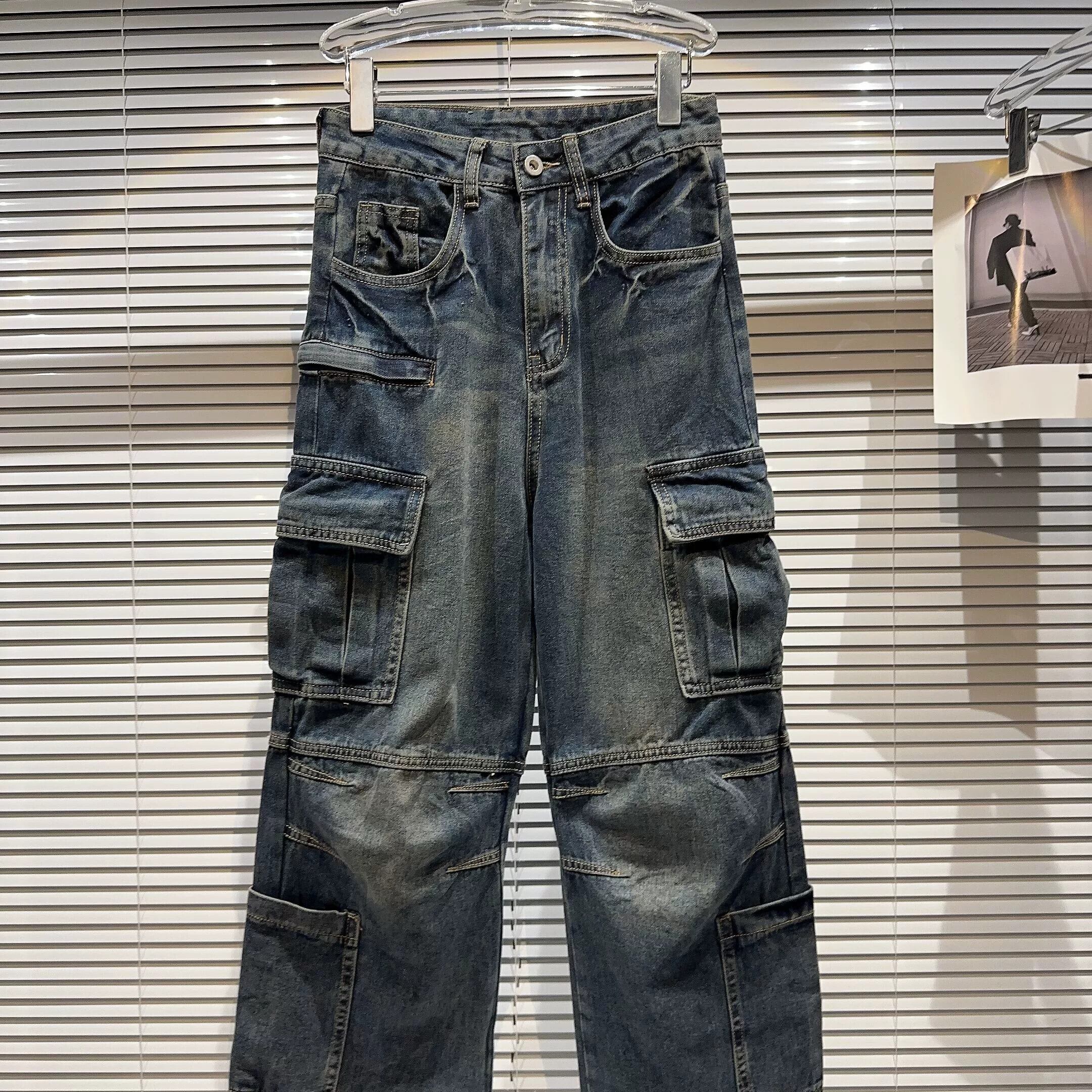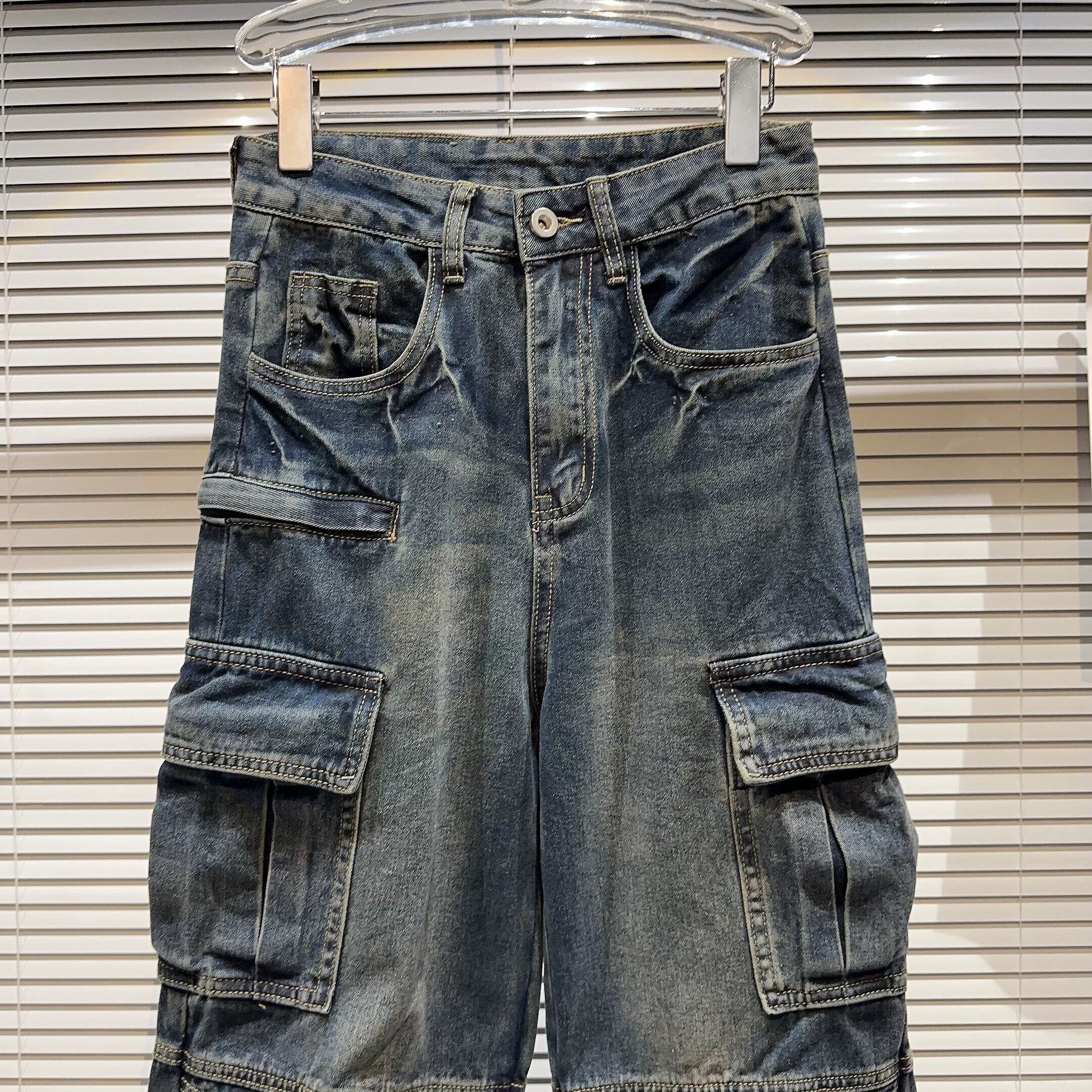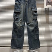 インターネットセレブと同じスタイル 2024 春の新しいストリートレトロ古いウォッシュウォーターカラーポケットワークウェア空挺部隊ジーンズ スプリング 春物 gyan3319561257406 | vestitialla