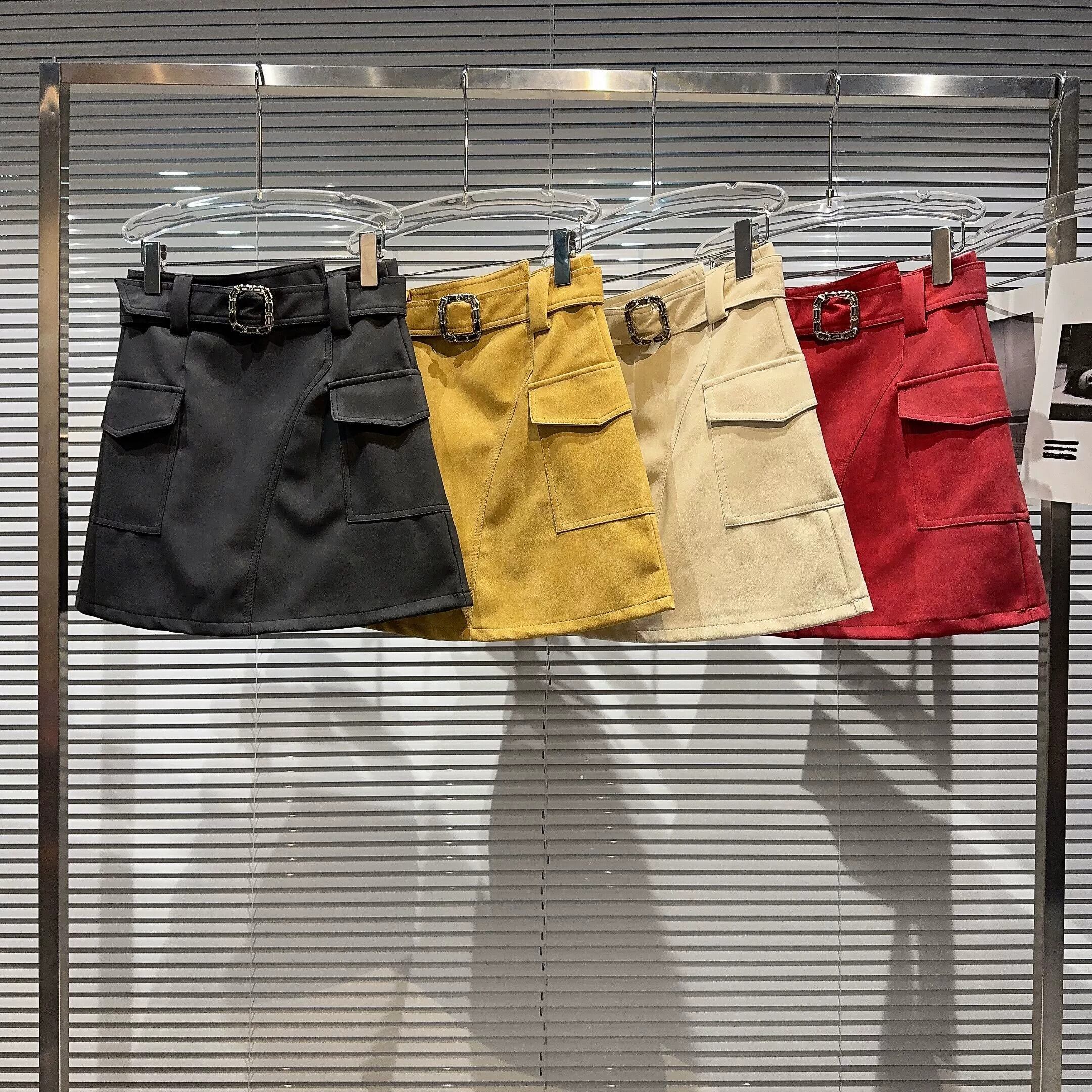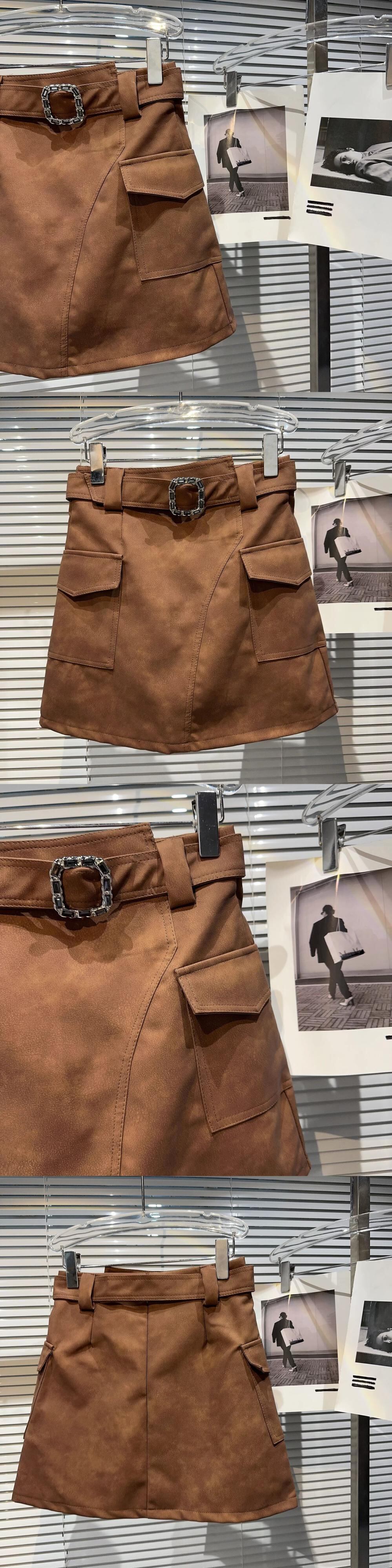 ネット有名人の同じスタイル 2024 春の新ニッチスタイルサイドポケットデザインスエード作業着ショートスカートヒップカバースカート女性 スウェード スプリング 春物 gyan3321348141248 | vestitialla