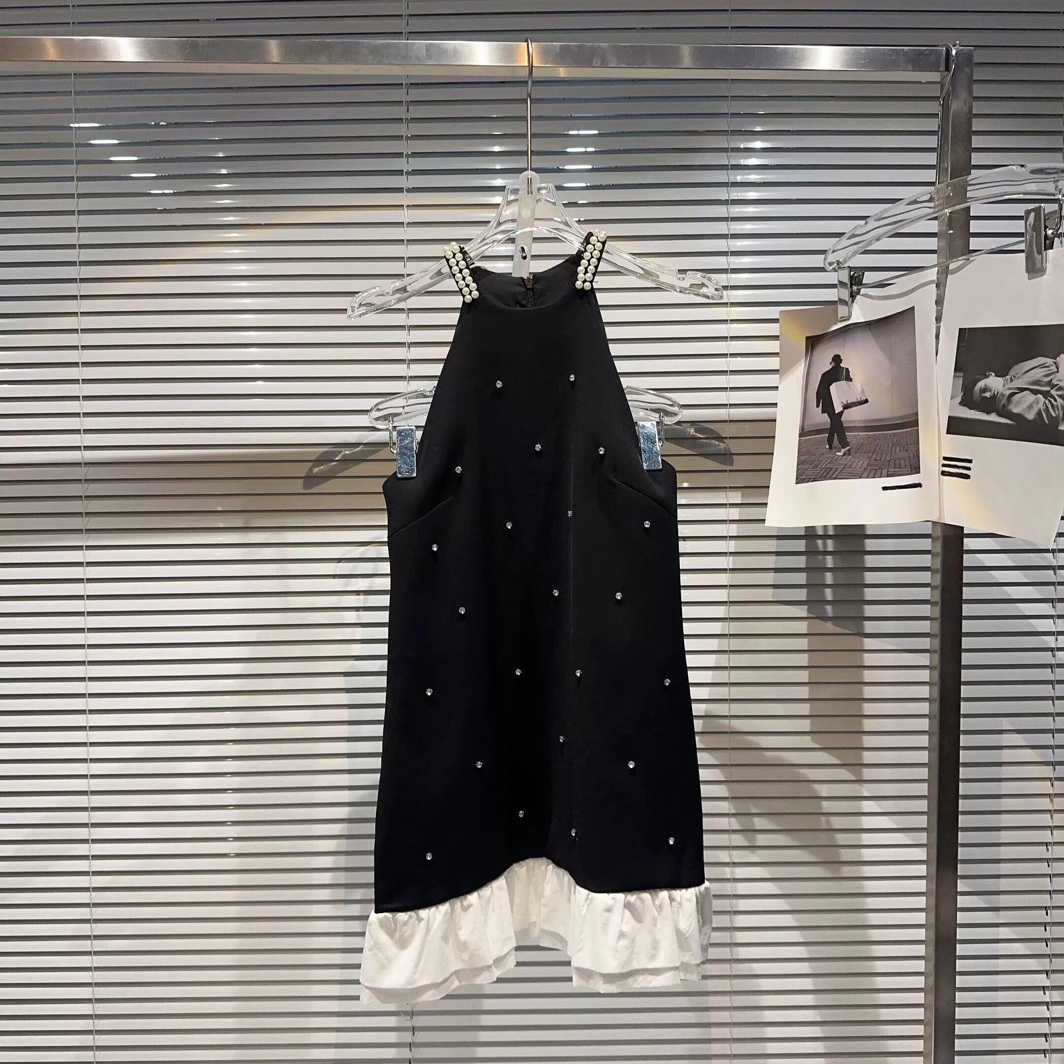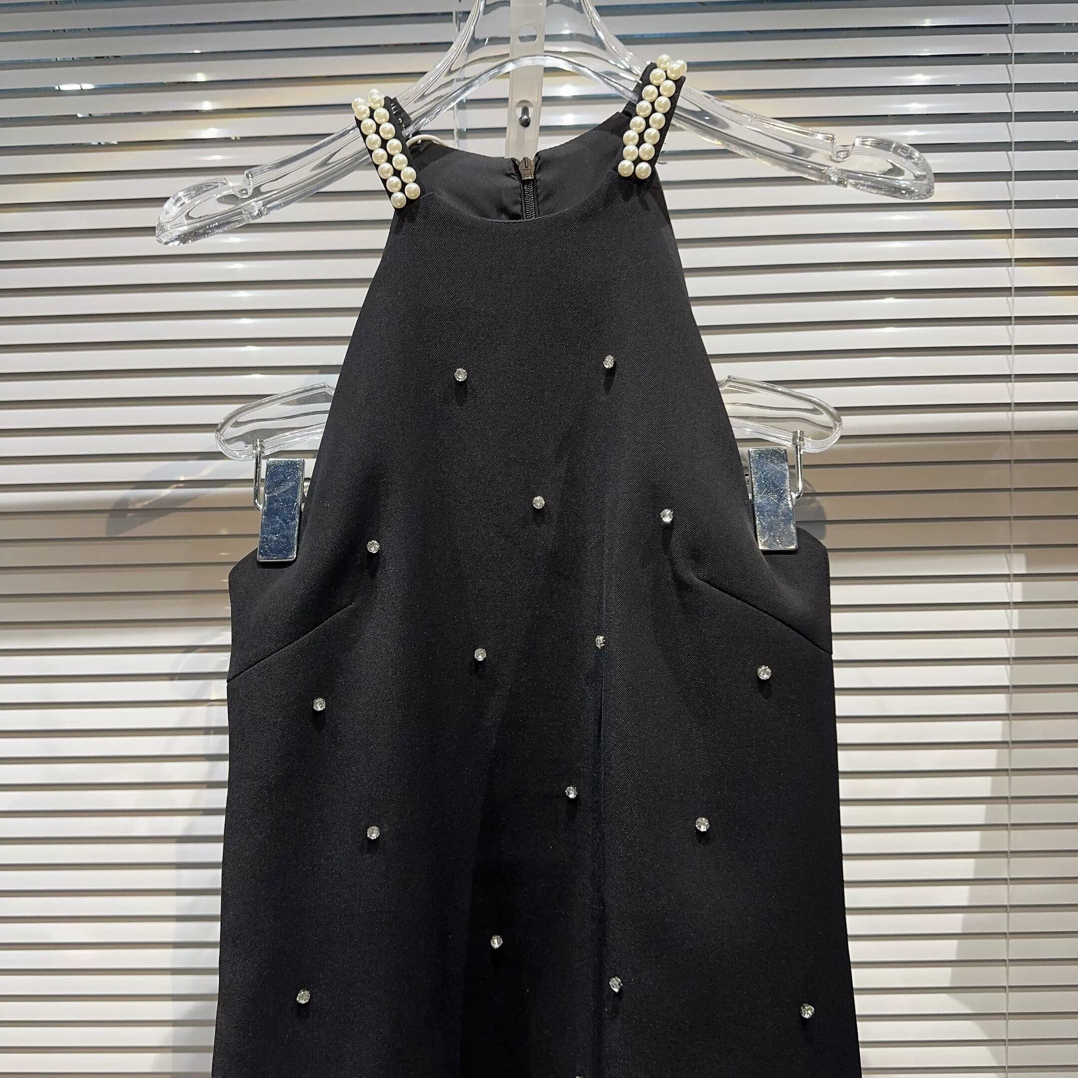 インターネット有名人の同じスタイル2024新しい夏のスタイル小さな香りのよいラインストーンビーズパールショルダーストラップ気質社交家サスペンダードレス サマー 夏物 真珠 gyan3379186643497 | vestitialla