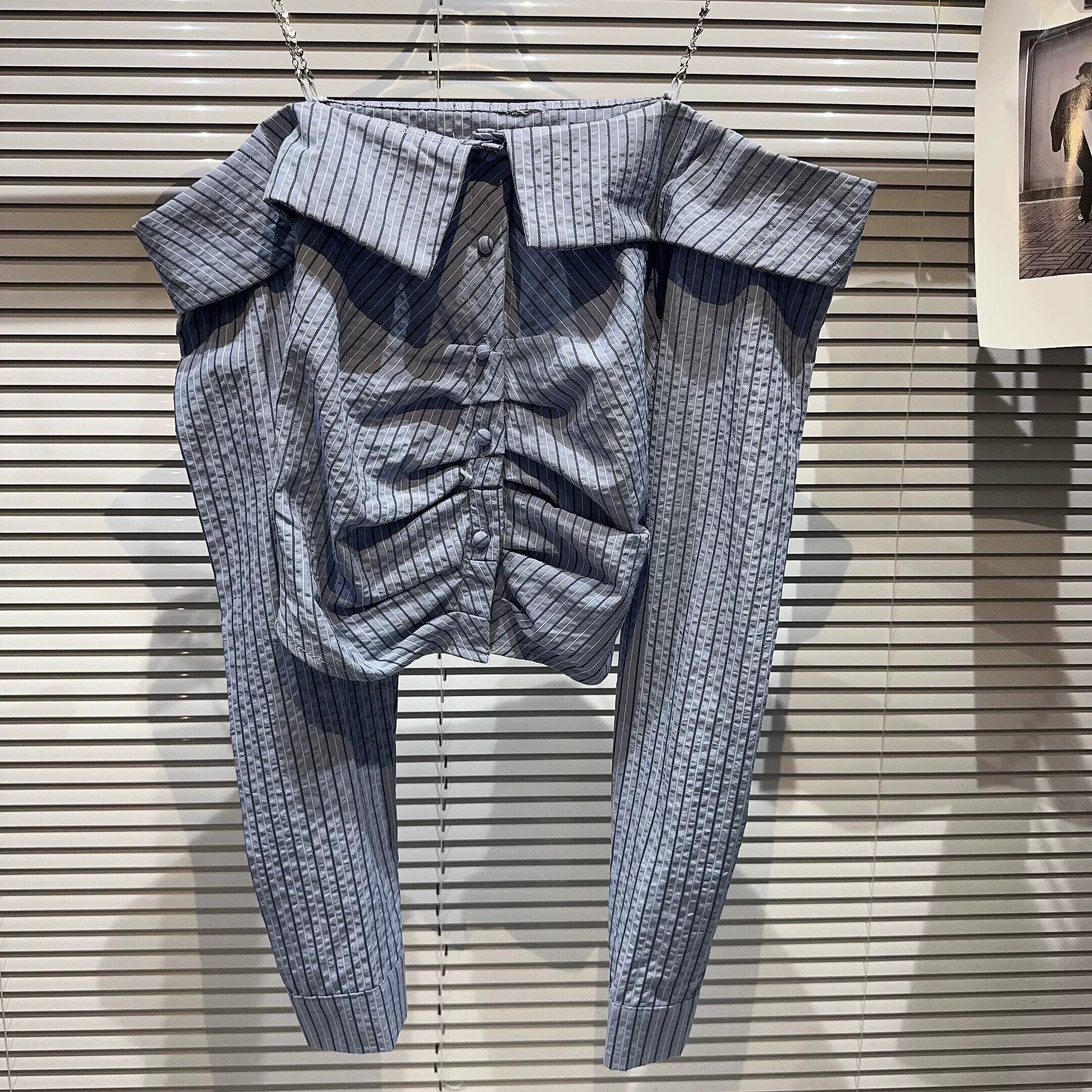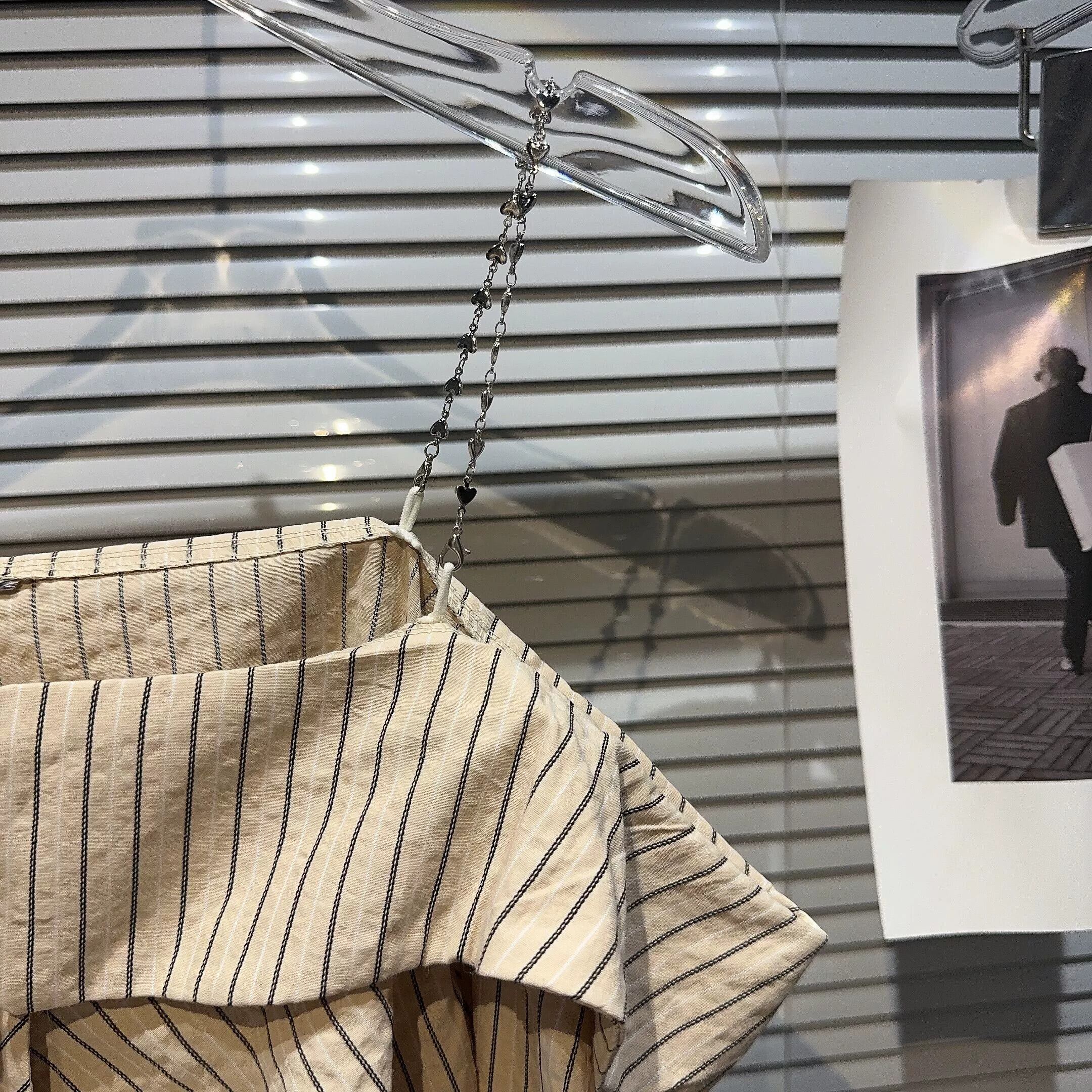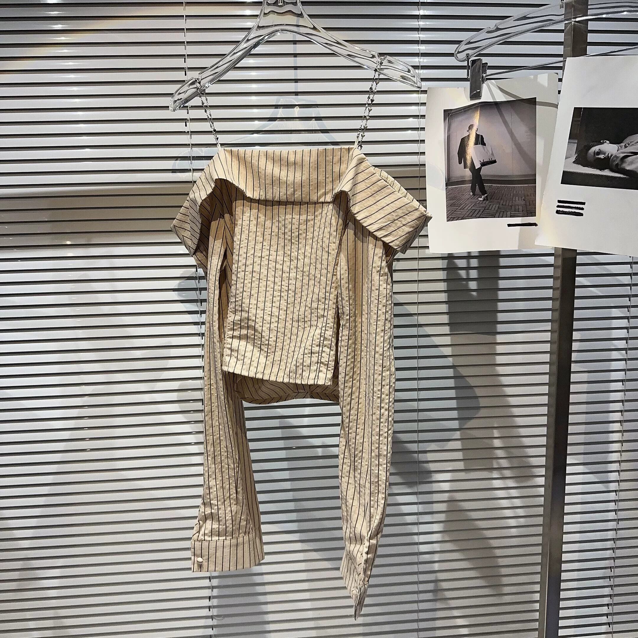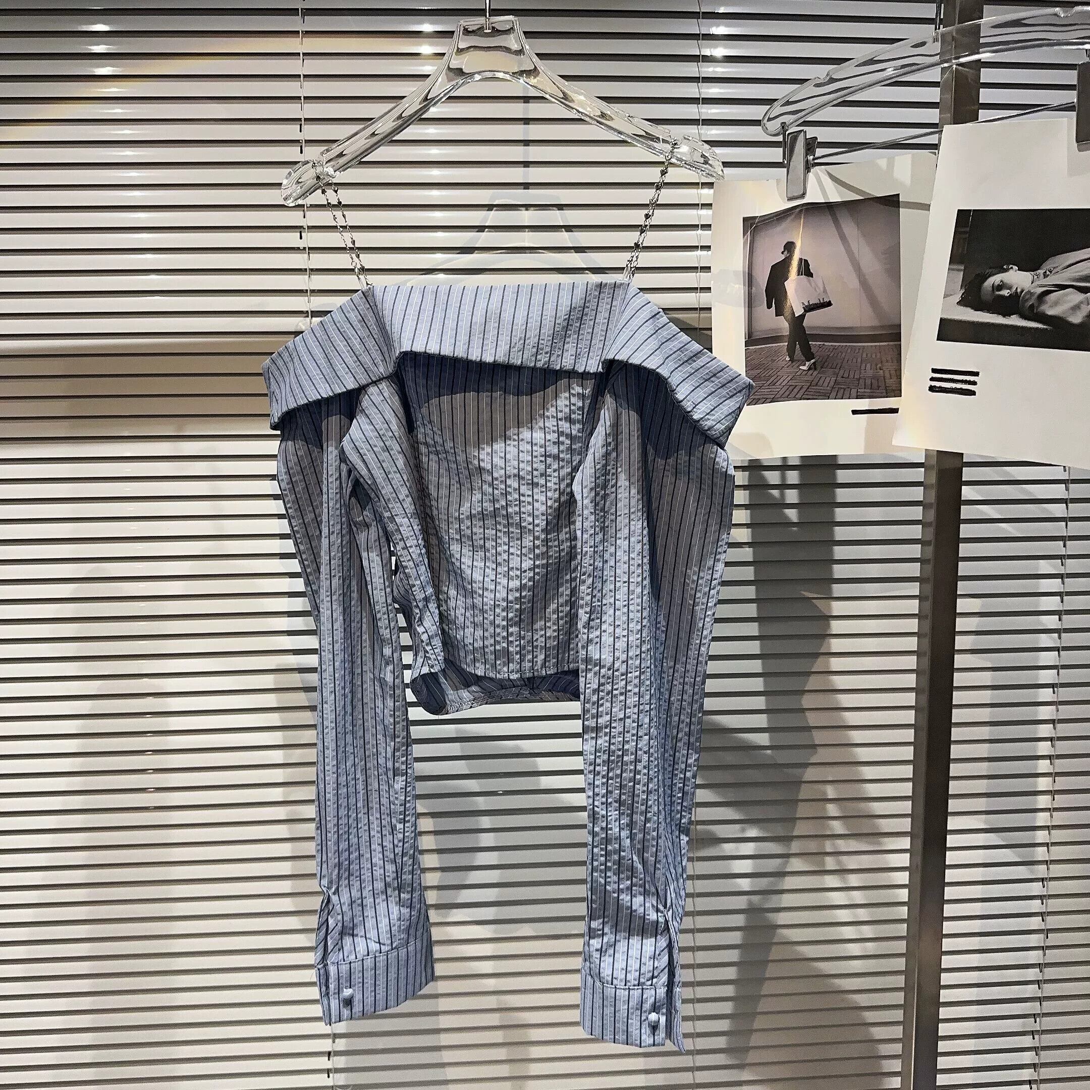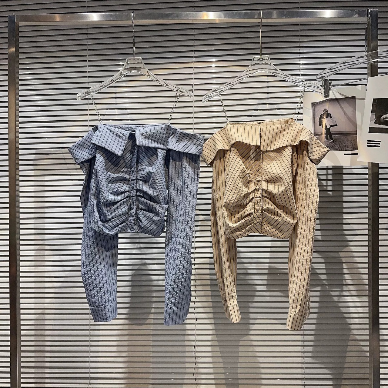 ネット有名人同スタイル2024春新作スモールフレグランス縦ストライププリーツワンワードサスペンダーショルダーエレガントレディシャツシャツ スプリング 春物 gyan3395893778639 | vestitialla