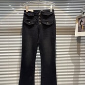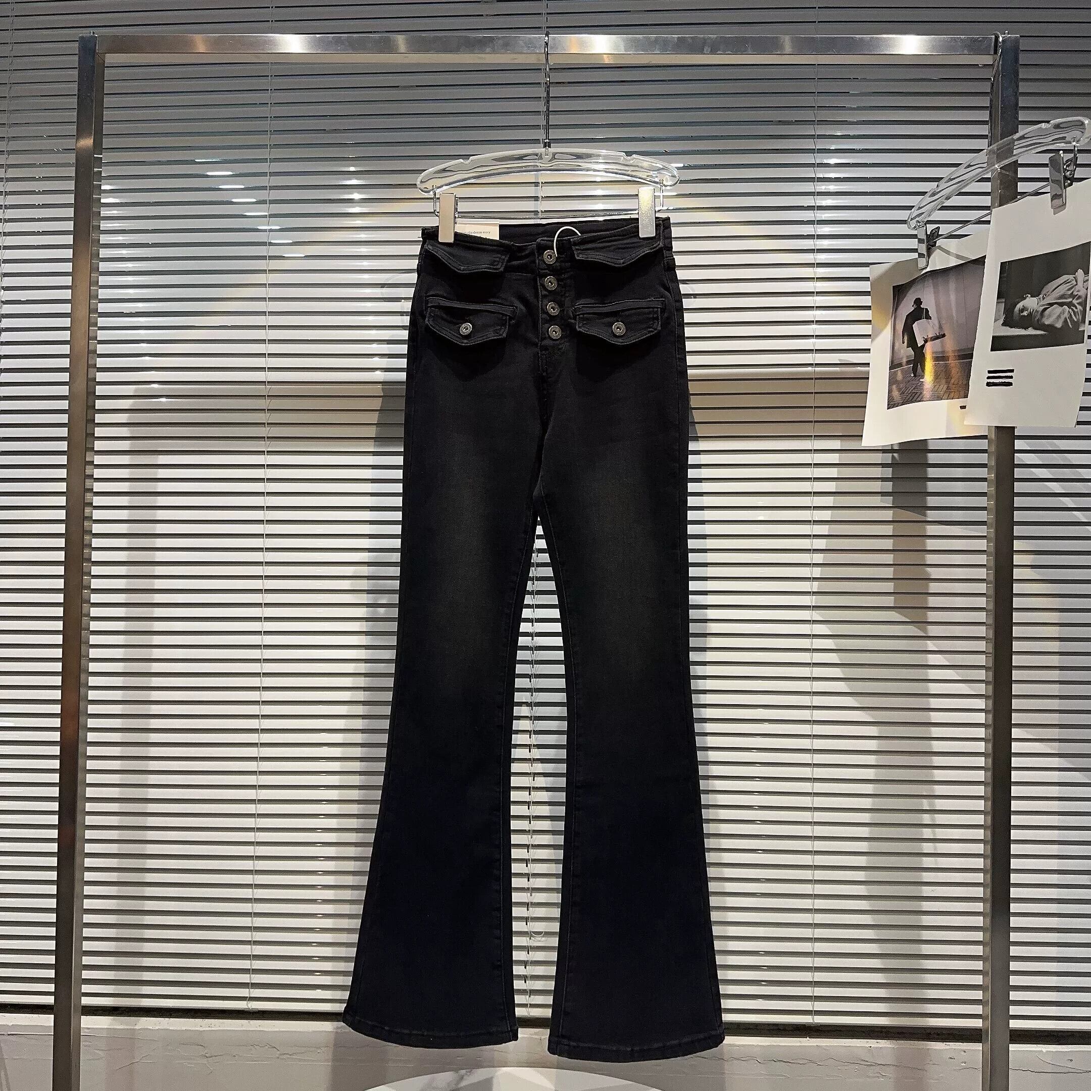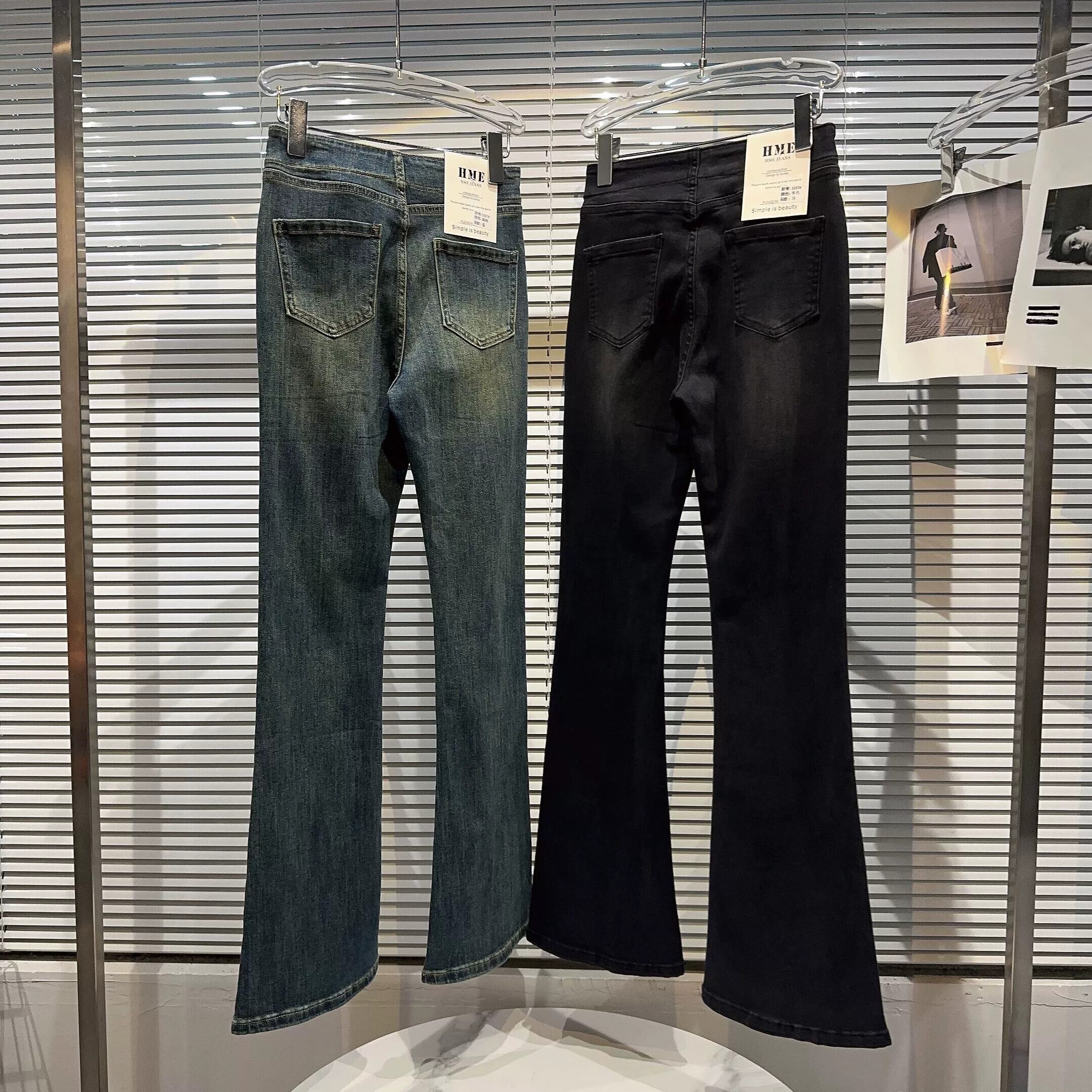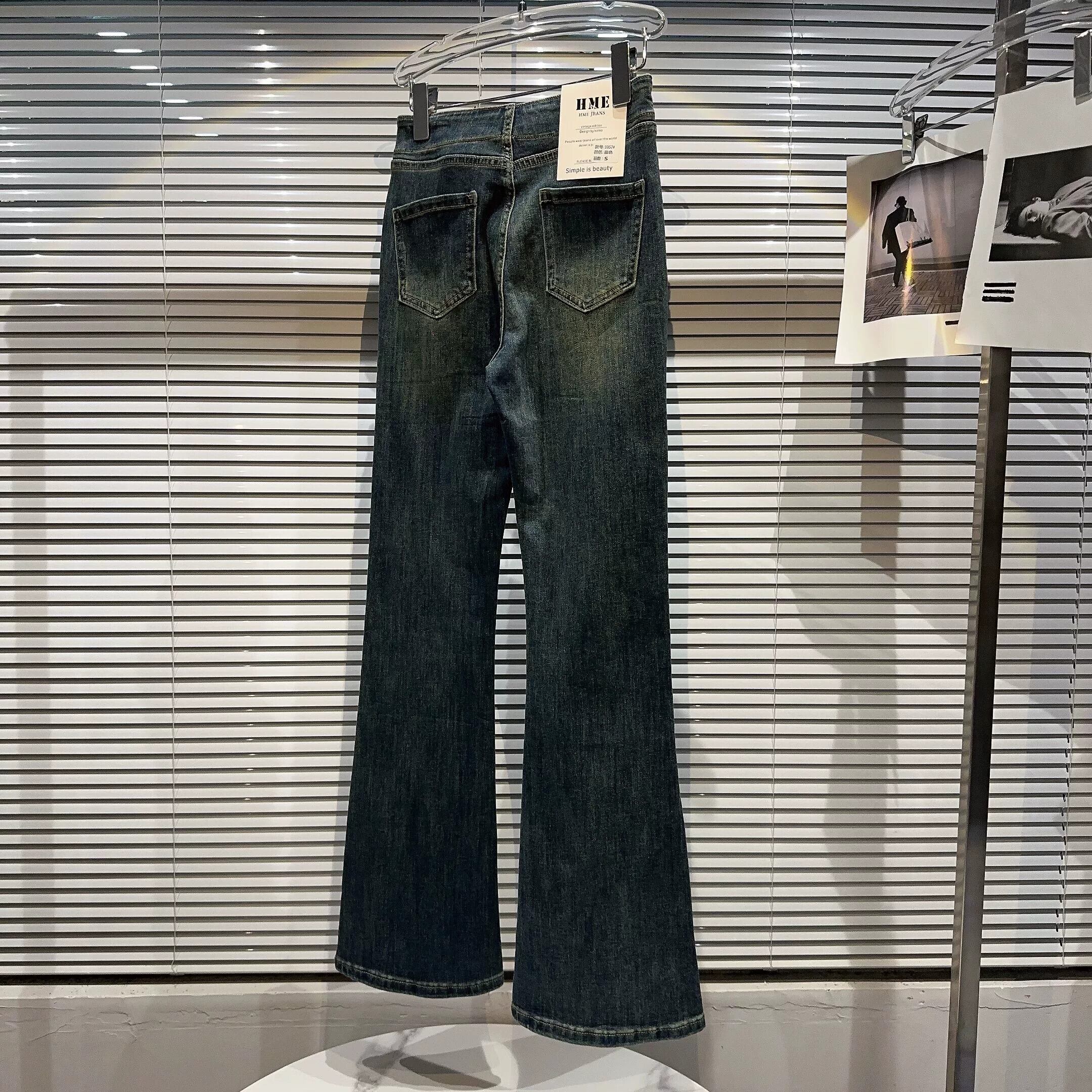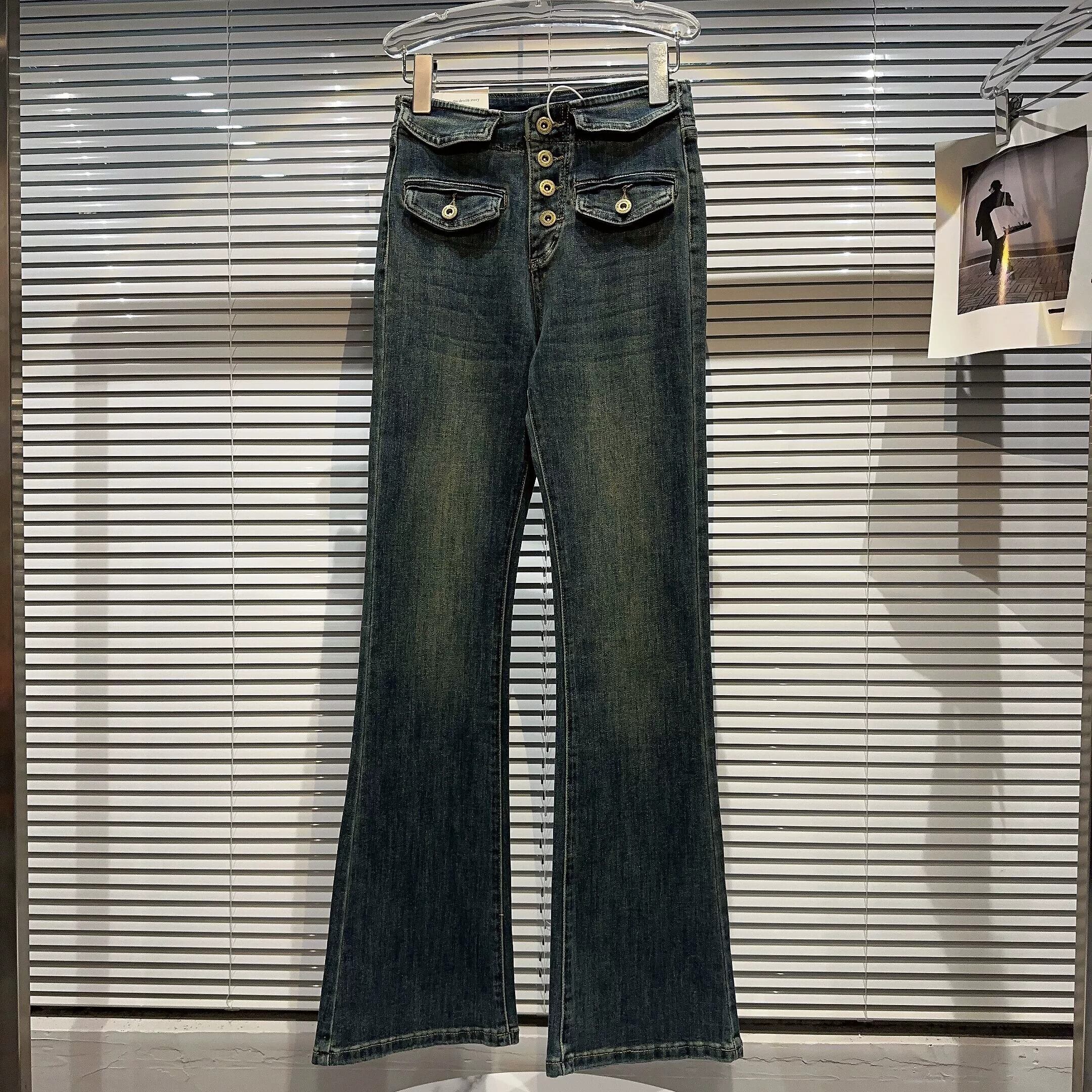ネット有名人の同じスタイル 2024 秋の新ベーシックシングルブレストウォッシュレトロダメージスリムフィットブーツカットジーンズ女性 オータム 秋物 gyan3369488608931 | vestitialla