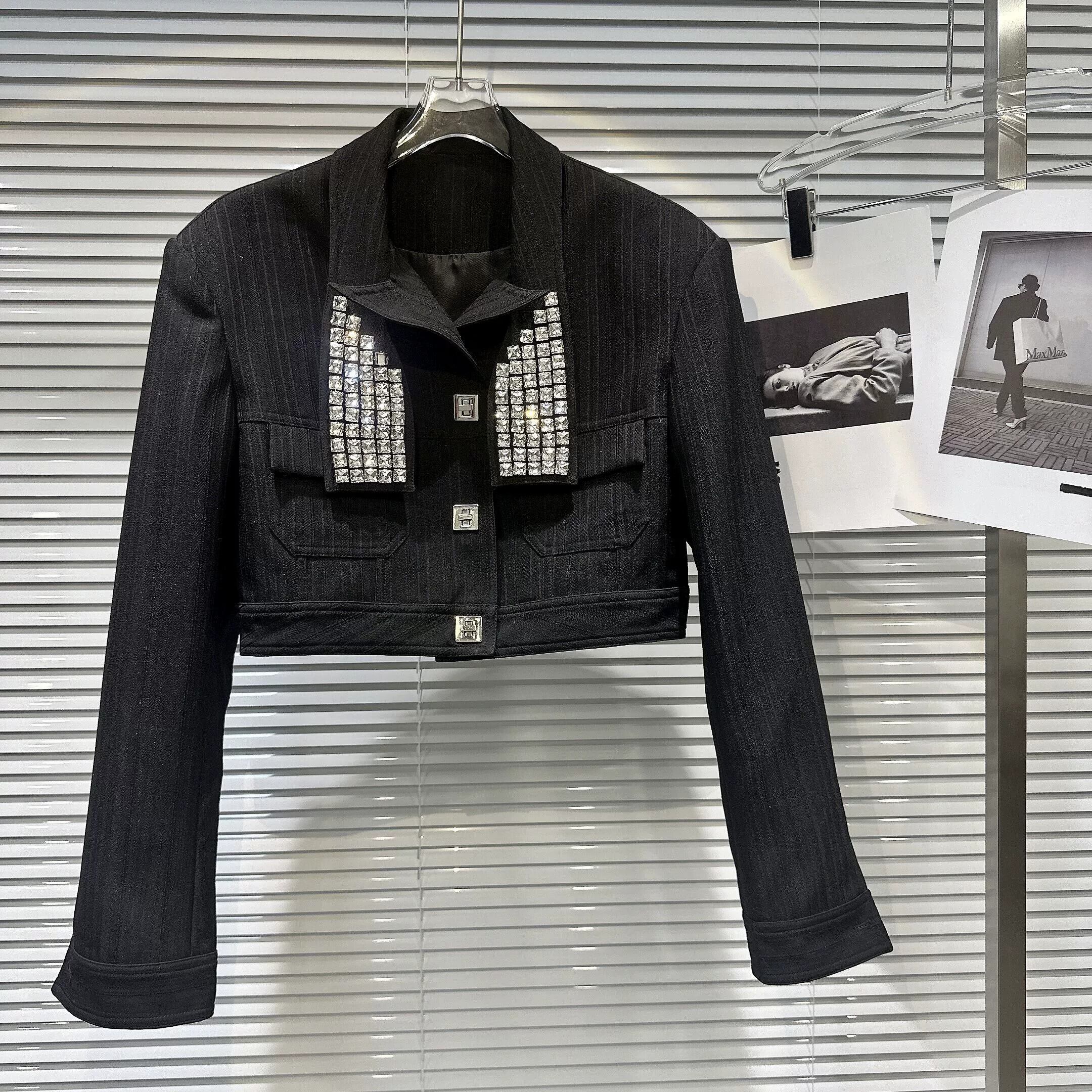 インターネットセレブと同じスタイル 2024 秋の新ニッチモデル手縫いスクエアラインストーンダークストライプジャケットショートコート女性 オータム 秋物 スクウェア ステッチ gyan3323758513294 | vestitialla