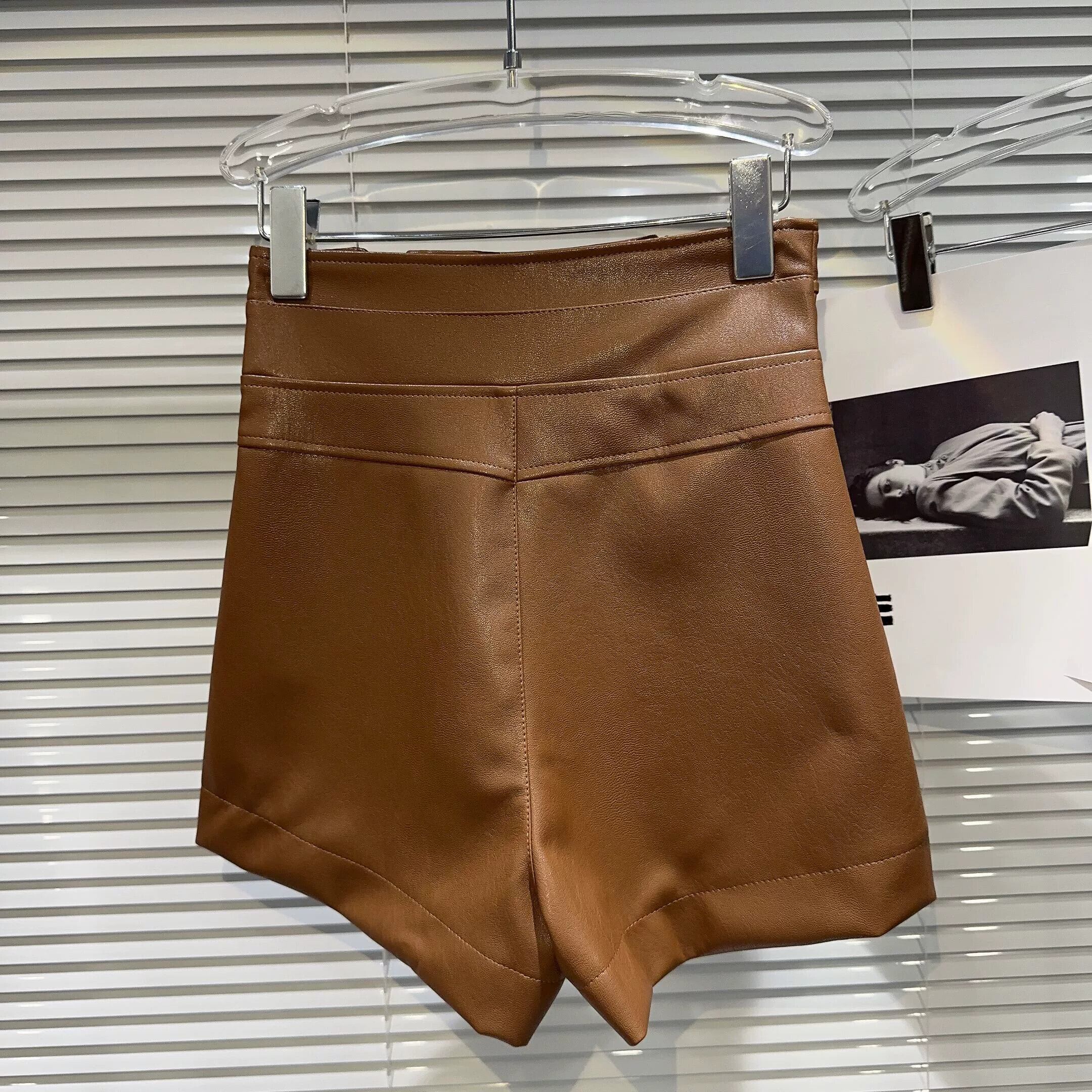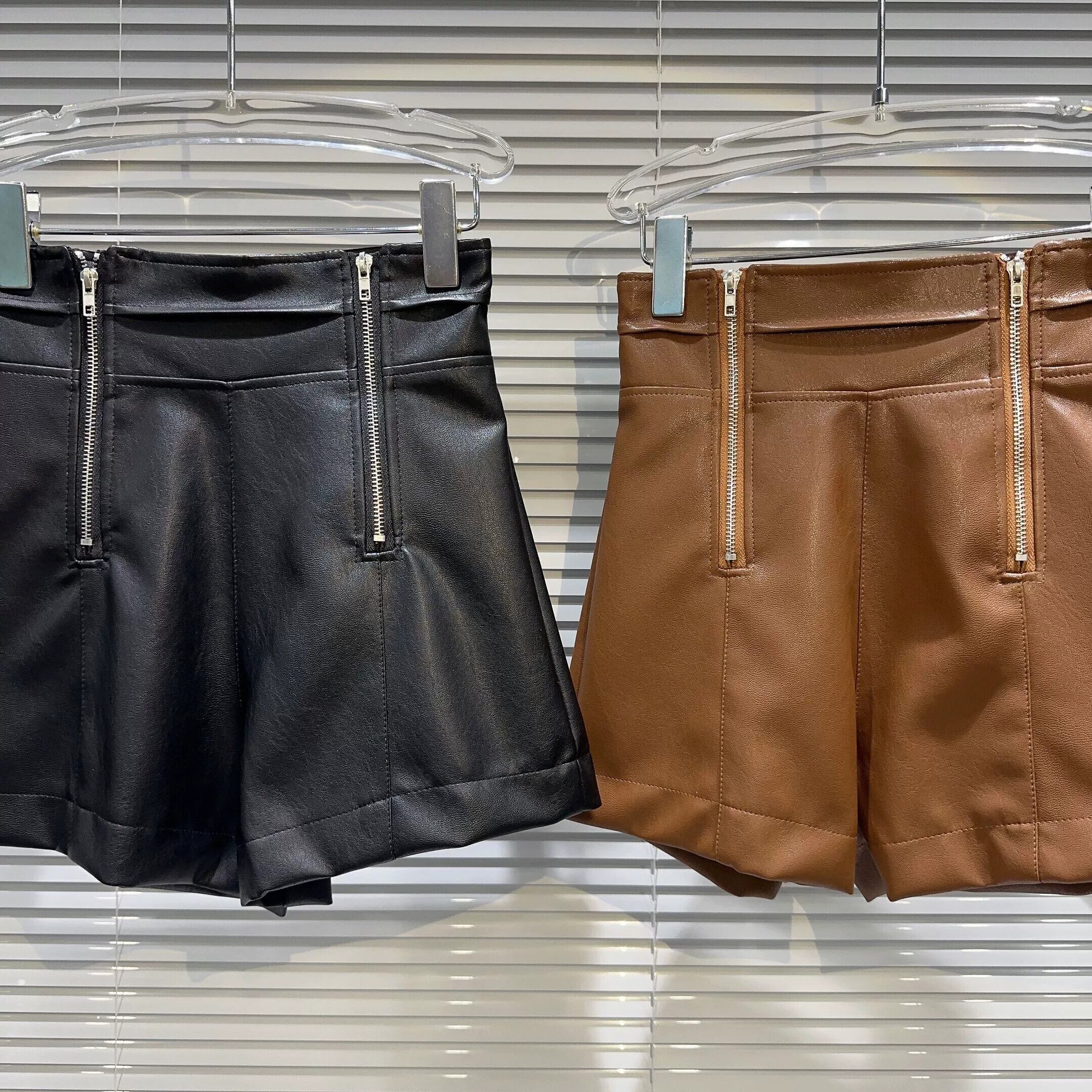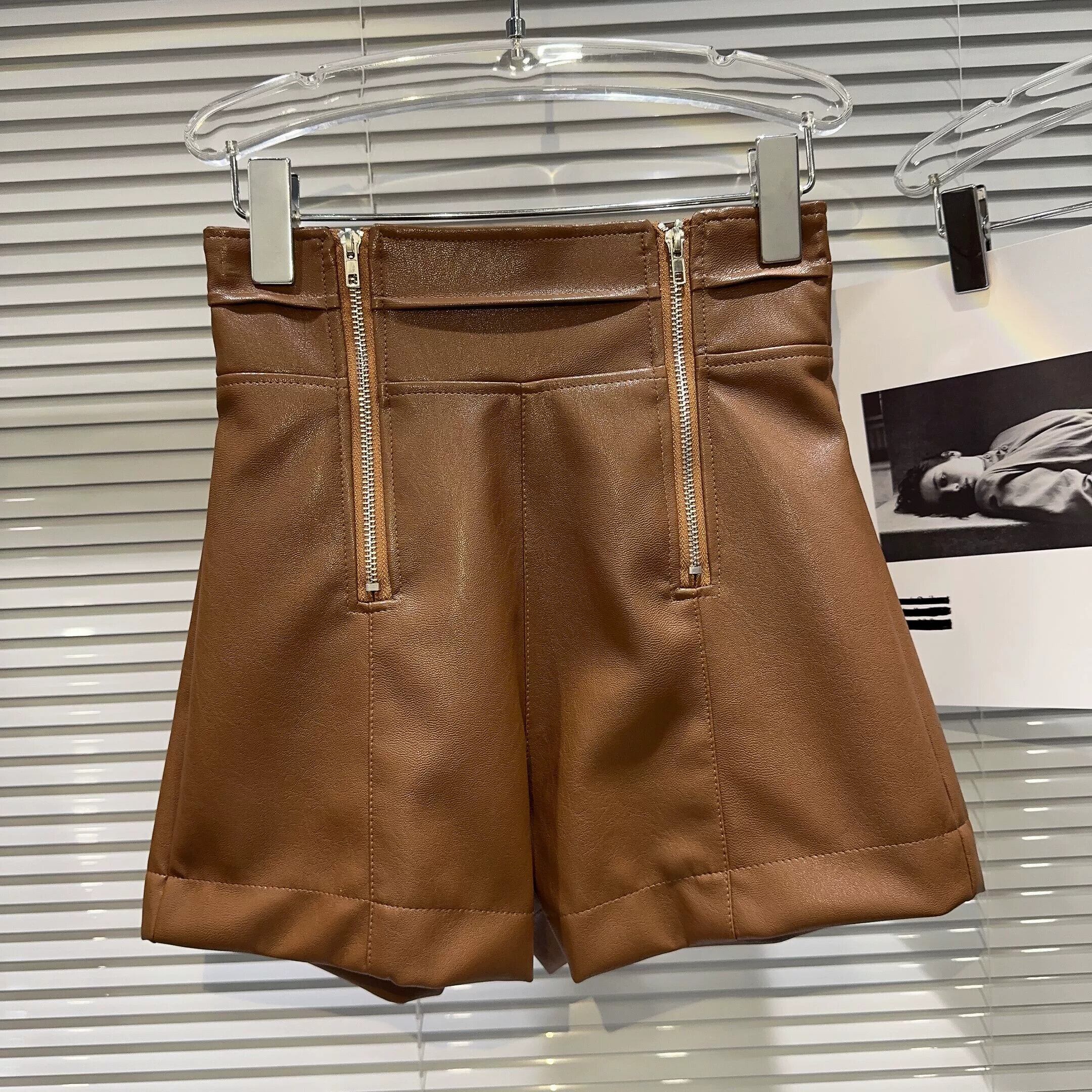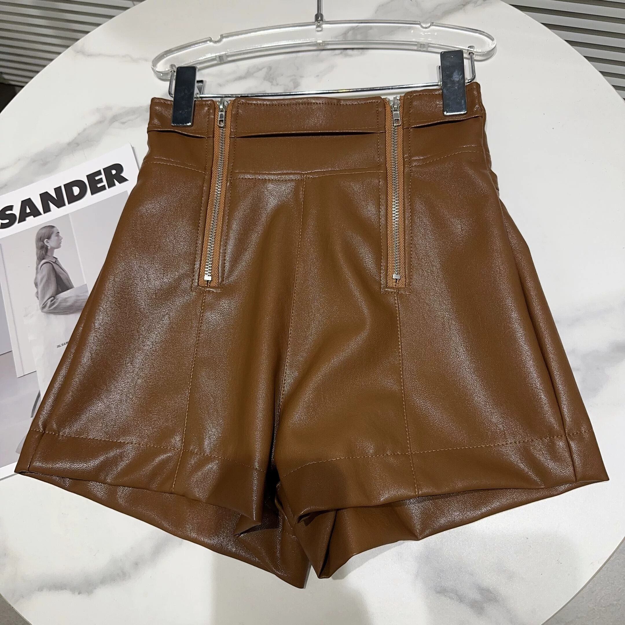 インターネットセレブの同じスタイル2024春の新しいニッチスタイルジッパー装飾ウォッシュレザースリムフィットレザーパンツショートパンツ スプリング 春物 ショーツ ブルマー gyan3399924409261 | vestitialla
