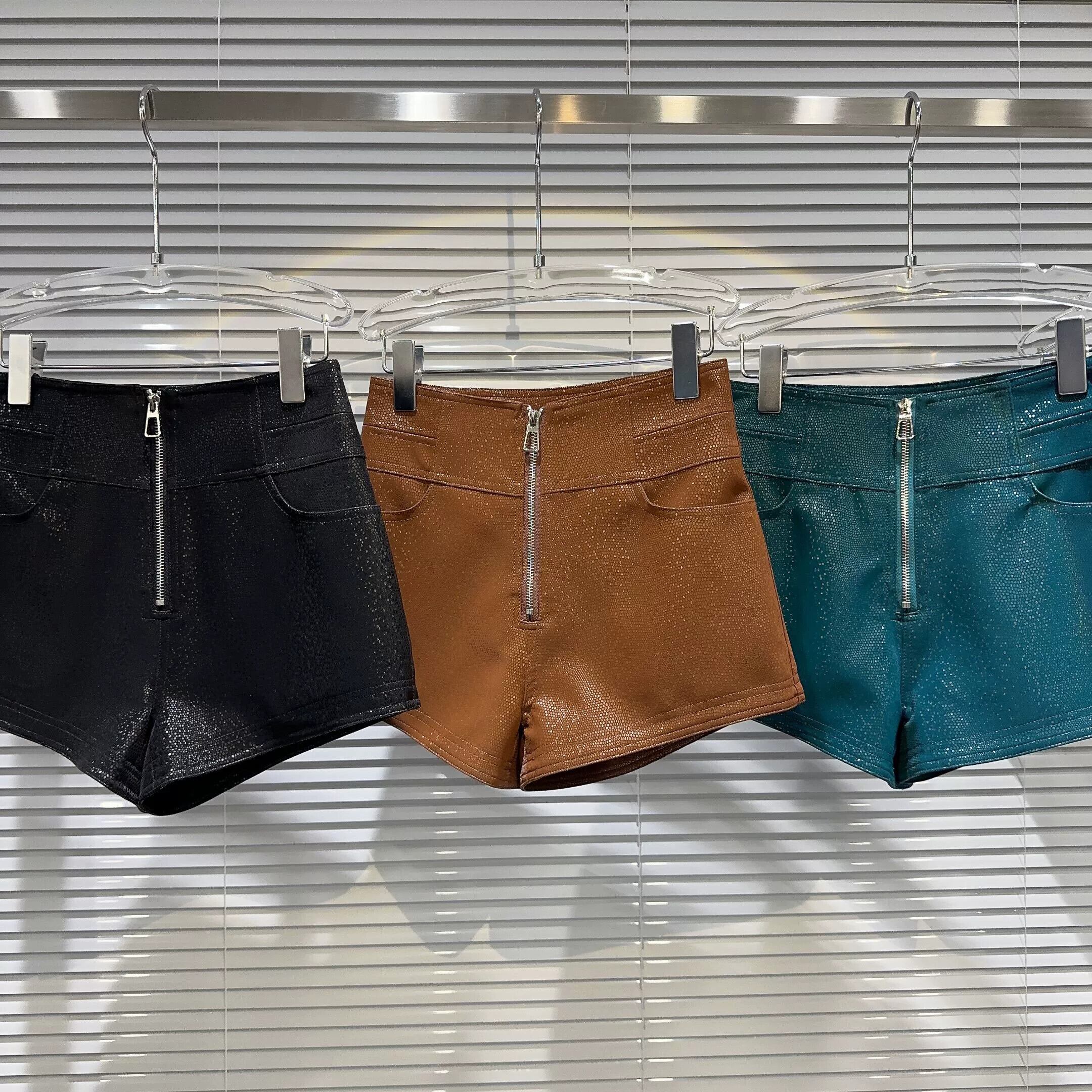 ネット有名人同スタイル2024春新作ニッチスタイルジッパースネーク柄マットレザースリムフィットスリーポイントショーツ スプリング 春物 ブルマー gyan3396991479781 | vestitialla