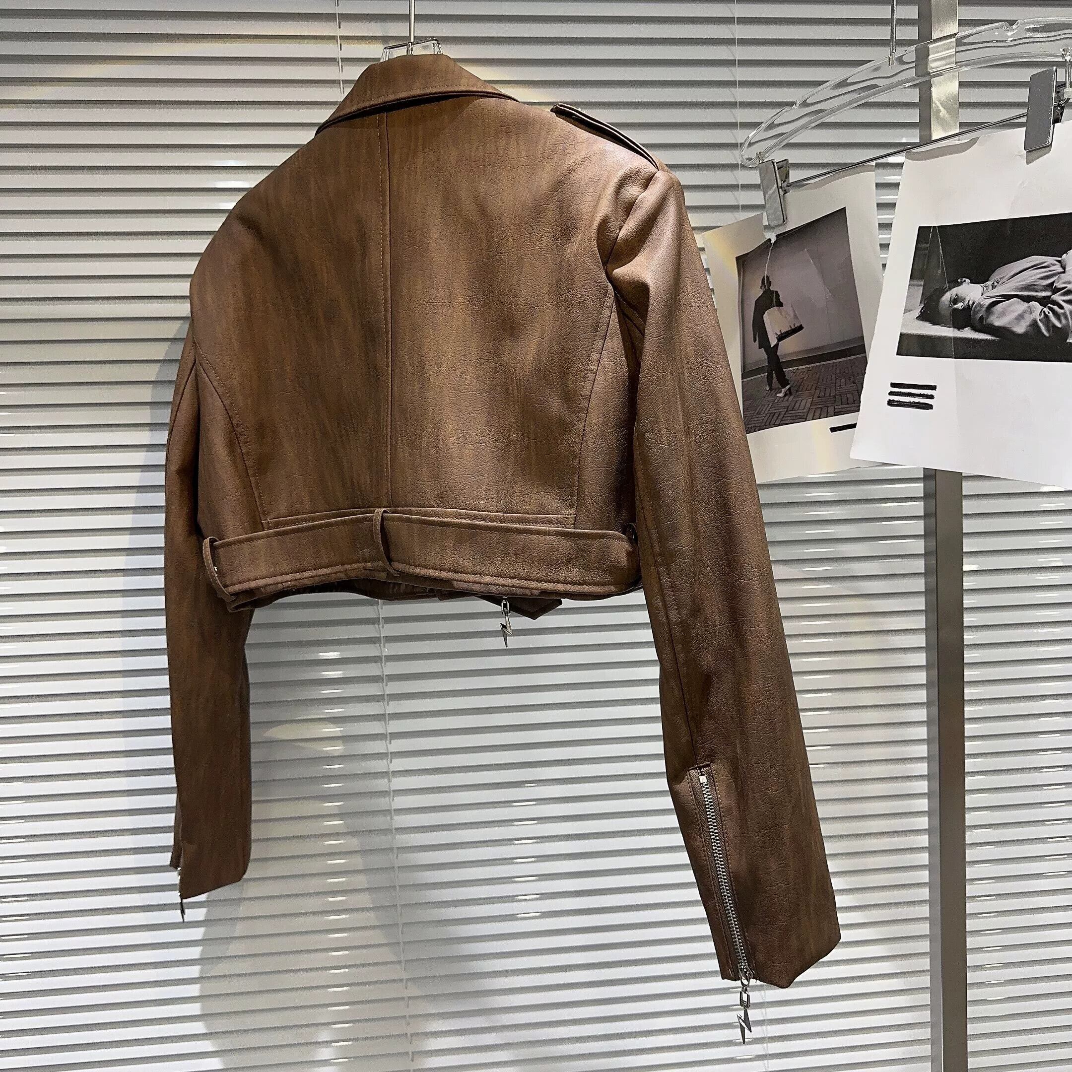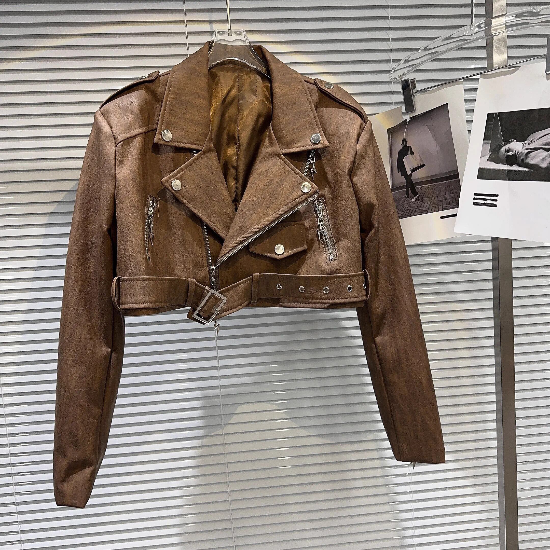 ネットセレブ同スタイル2024春新作ストリートテクスチャーダメージレザー斜めジッパーベルトレザージャケットジャケット スプリング 春物 ハーネス gyan3334501389293 | vestitialla