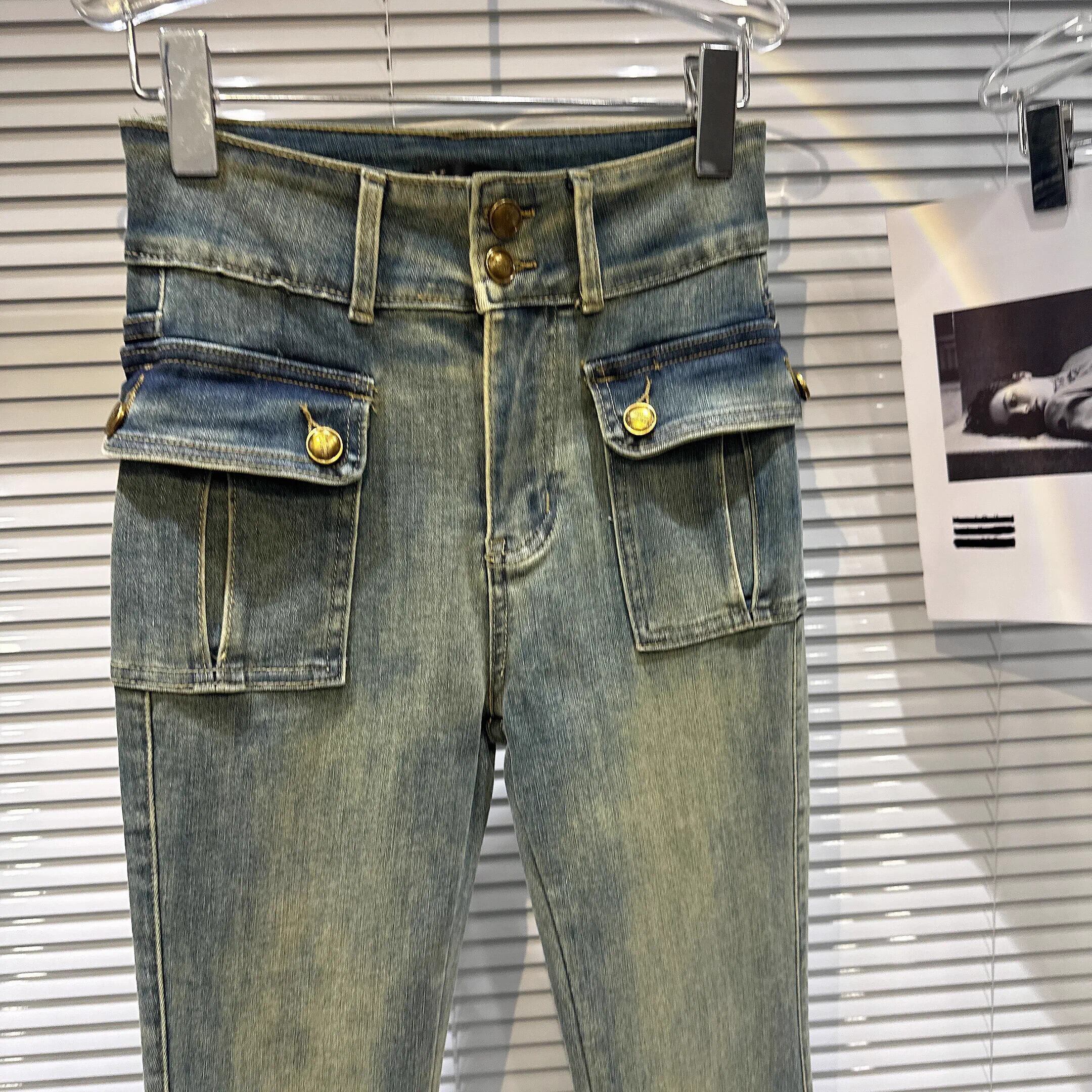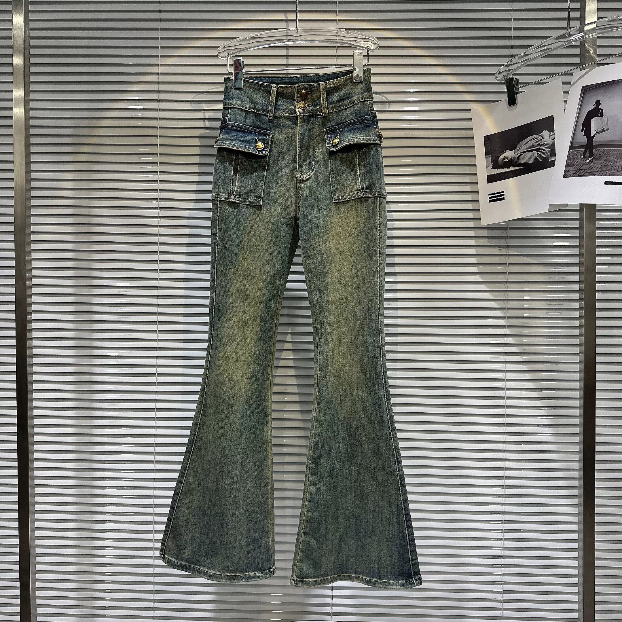 インターネット有名人の同じスタイル2024春の新しいニッチスタイルダブルポケットウォッシュ加工スリムブーツカットジーンズ スプリング 春物 gyan3361095791245 | vestitialla
