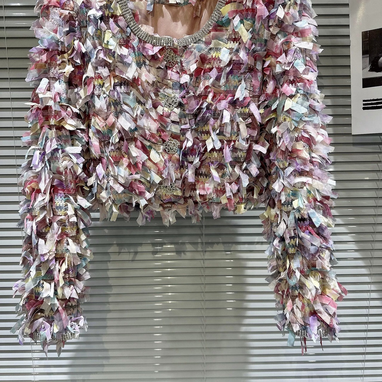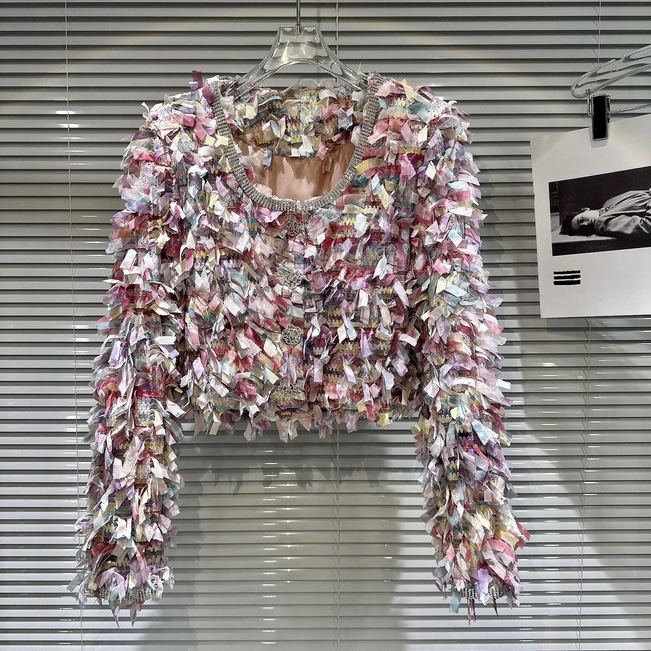 インターネット有名人の同じスタイル2024新しい秋スタイル小さな香りの良いラインストーンの襟カラフルな布ストリップエレガントな女性のショートジャケットトップ オータム 秋物 gyan3396057384975 | vestitialla