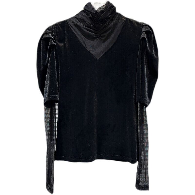 インターネット有名人の同じスタイル 2024 春の新スタイル Xiaoxiangfeng メッシュスプライシング袖襟ベルベットセレブ Tシャツ小さなシャツ スプリング 春物 gyan3311142717528 | vestitialla