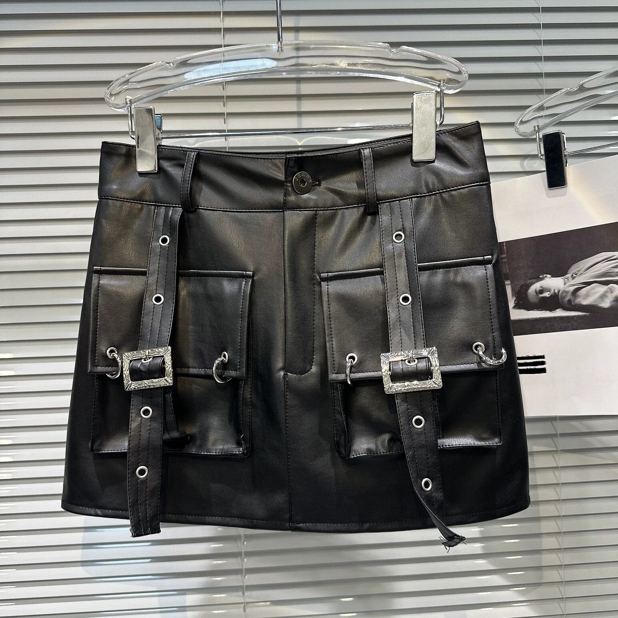 ネット有名人同スタイル 2024 春新作 ストリート クール ワークウェア 大きなポケット レザースカート Hスカート スカート ヒップスカート スプリング 春物 gyan3345180736810 | vestitialla