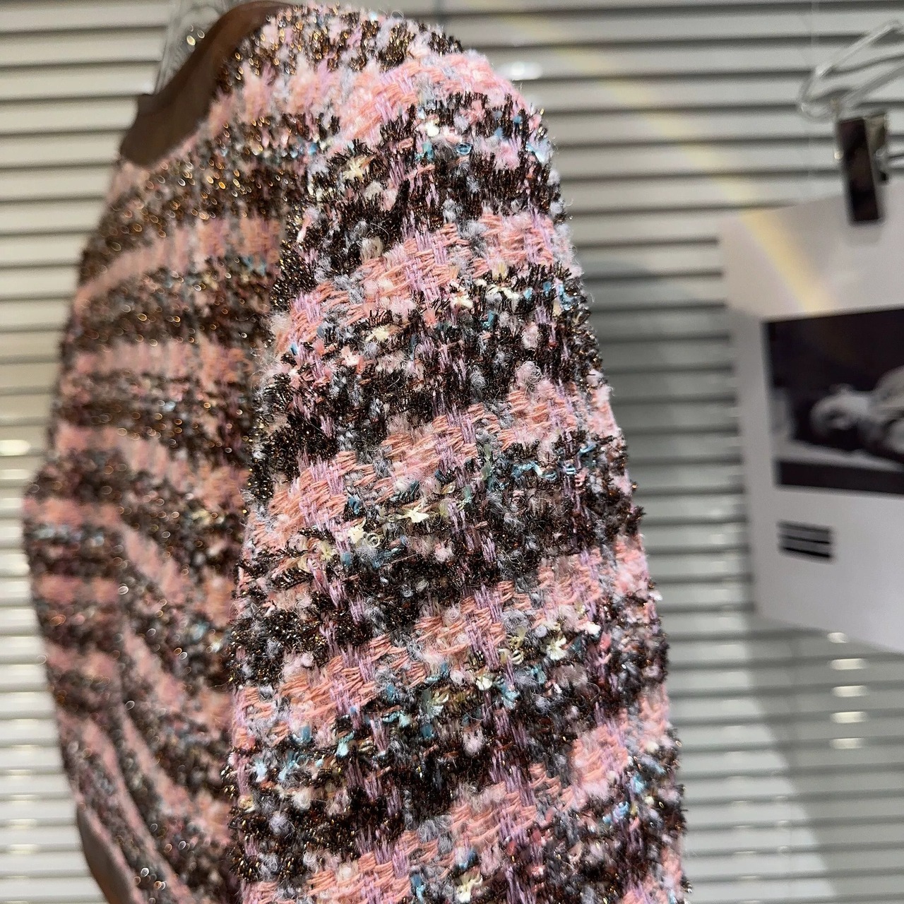 インターネット有名人の同じスタイル2024春の新しい小さな香りスタイルの高精細ダイヤモンドボタンスパンコールとレザーエッジツイードキルティングショートジャケット スプリング 春物 gyan3313070738692 | vestitialla
